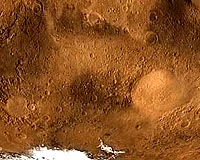 Washington DC (SPX) Apr 19, 2005 Since the time, billions of years ago, when Mars was formed, it has never been a spherically symmetric planet, nor is it composed of similar materials throughout, say scientists who have studied the planet. Since its formation, it has changed its shape, for example, through the development of the Tharsis bulge, an eight kilometer [five mile] high feature that covers one-sixth of the Martian surface, and through volcanic activity. As a result of these and other factors, its polar axis has not been stable relative to surface features and is known to have wandered through the eons as Mars rotated around it and revolved around the Sun. Now, a Canadian researcher has calculated the location of Mars' ancient poles, based upon the location of five giant impact basins on the planet's surface. Jafar Arkani-Hamed of McGill University in Montreal, Quebec, has determined that these five basins, named Argyre, Hellas, Isidis, Thaumasia, and Utopia, all lie along the arc of a great circle. This suggests that the projectiles that caused the basins originated with a single source and that the impacts trace the Martian equator at the time of impact, which was prior to the development of the Tharsis bulge, he says. Writing in the Journal of Geophysical Research (Planets), Arkani-Hamed calculates that the source of the five projectiles was an asteroid that had been circling the Sun in the same plane as Mars and most of the other planets. At one point, it passed close to the planet, until the force of Martian gravity surpassed the tensile strength of the asteroid, at which point it fragmented. The five large fragments would have remained in the same plane, that of Mars' then-equator. They hit in different spots around the Martian globe, due to Mars' rotation on its then-axis and the differing lengths of time the fragments took before impacting on Mars. Arkani-Hamed describes the locations of the resulting basins, only three of which are well preserved. The two others have been detected by analysis of Martian gravitational anomalies. The great circle they describe on the Martian surface has its center at latitude -30 and longitude 175. By realigning the map of Mars with that spot as the south pole, the great circle marks the ancient equator. Arkani-Hamed estimates that the mass of the asteroid captured by Mars was about one percent of that of Earth's Moon. Its diameter was in the range of 800 to 1,000 kilometers [500 to 600 miles], depending upon its density, which cannot be determined. The significance of Arkani-Hamed's findings, if borne out by further research, is that the extent of presumed underground water on Mars would have to be reassessed. "The region near the present equator was at the pole when running water most likely existed," he said in a statement. "As surface water diminished, the polar caps remained the main source of water that most likely penetrated to deeper strata and has remained as permafrost, underlain by a thick groundwater reservoir. This is important for future manned missions to Mars." Community Email This Article Comment On This Article Related Links McGill University American Geophysical Union SpaceDaily Search SpaceDaily Subscribe To SpaceDaily Express Mars News and Information at MarsDaily.com Lunar Dreams and more