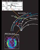 Washington - May 22, 2003 Five spacecraft have made a remarkable set of observations, leading to a breakthrough in understanding the origin of a peculiar and puzzling type of aurora. Seen as bright spots in Earth's atmosphere and called "dayside proton auroral spots," they are now known to occur when fractures appear in the Earth's magnetic field, allowing particles emitted from the Sun to pass through and collide with molecules in our atmosphere. On March 18, 2002, a jet of energetic solar protons collided with the Earth's atmosphere and created a bright "spot" seen by NASA's IMAGE spacecraft, just as the European Space Agency's (ESA) four Cluster spacecraft passed overhead and straight through the proton jet. This is the first time that a precise and direct connection between the proton jet and bright spot has been made, and it results from the simultaneous observations by Cluster and IMAGE. The results of the study are published May 21 in Geophysical Research Letters, a journal of the American Geophysical Union, in a paper by Tai Phan of the University of California in Berkeley and 24 international colleagues. Earth's magnetic field acts as a shield, protecting the planet from the constant stream of tiny particles ejected by the Sun, known as the solar wind. The solar wind itself is a stream of hydrogen atoms, separated into their constituent protons and electrons. When electrons find routes into our atmosphere, they collide with and "excite" the atoms in the air. When these excited atoms release their energy, it is emitted as light, creating the glowing "curtains" we see as the aurora borealis in the far north and aurora australis in the far south. Dayside proton auroral spots are caused by protons "stealing" electrons from the atoms in our atmosphere. An extensive analysis of the Cluster results has now shown that the region was experiencing a turbulent event known as "magnetic reconnection." Such a phenomenon takes place when the Earth's usually impenetrable magnetic field fractures and has to find a new stable configuration. Until the field mends itself, solar protons leak through the gap and jet into Earth's atmosphere, creating the dayside proton aurora. Philippe Escoubet, ESA's Cluster Project Scientist, comments, "Thanks to Cluster's observations, scientists can directly and firmly link for the first time a dayside proton auroral spot and a magnetic reconnection event." Tai Phan, leader of the investigation, now looks forward to a new way of studying the Earth's protective shield. He says, "This result has opened up a new area of research. We can now watch dayside proton aurorae and use those observations to know where and how the cracks in the magnetic field are formed and how long the cracks remain open. That makes it a powerful tool to study the entry of the solar wind into the Earth's magnetosphere." Proton auroras were globally imaged for the first time by NASA's IMAGE (Imager for Magnetopause-to-Aurora Global Exploration) spacecraft, which revealed the presence of dayside proton auroral spots. ESA's Cluster is a collection of four spacecraft, launched on two Russian rockets during the summer of 2000. They fly in formation around the Earth, relaying the most detailed information ever about how the solar wind affects the planet. The principal investigators for the instruments in the current study were Henri Reme of CESR/Toulouse, France (Cluster Proton Detectors), Andre Balogh of Imperial College, London, United Kingdom (Cluster Magnetic Field Instrument), and Stephen Mende of University of California, Berkeley (IMAGE/FUV). "Simultaneous Cluster and IMAGE Observations of Cusp Reconnection and Auroral Spot for Northward IMF" Citation: T. Phan, H. U. Frey, S. Frey, L. Peticolas, S. Fuselier, C. Carlson, H. Reme, J.-M. Bosqued, A. Balogh, M. Dunlop, L. Kistler, C. Mouikis, I. Dandouras, J.-A. Sauvaud, S. Mende, J. McFadden, G. Parks, E. Moebius, B. Klecker, G. Paschmann, M. Fujimoto, S. Petrinec, M. F. Marcucci, A. Korth, and R. Lundin, Simultaneous Cluster and IMAGE observations of cusp reconnection and auroral proton spot for northward IMF, Geophys. Res. Lett., 30(10), 1509, doi:10.1029/2003GL016885, 2003. Community Email This Article Comment On This Article Related Links Space Sciences Laboratory, University of California European Space Agency SpaceDaily Search SpaceDaily Subscribe To SpaceDaily Express Dirt, rocks and all the stuff we stand on firmly