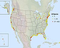 Washington DC (SPX) Apr 07, 2009 NOAA scientists have stated that Polybrominated Diphenyl Ethers (PBDEs), chemicals commonly used in commercial goods as flame retardants since the 1970s, are found in all United States coastal waters and the Great Lakes, with elevated levels near urban and industrial centers. The new findings are in contrast to analysis of samples as far back as 1996 that identified PBDEs in only a limited number of sites around the nation. Based on data from NOAA's Mussel Watch Program, which has been monitoring coastal water contaminants for 24 years, the nationwide survey found that New York's Hudson Raritan Estuary had the highest overall concentrations of PBDEs, both in sediments and shellfish. Individual sites with the highest PBDE measurements were found in shellfish taken from Anaheim Bay, Calif., and four sites in the Hudson Raritan Estuary. Watersheds that include the Southern California Bight, Puget Sound, the central and eastern Gulf of Mexico off the Tampa-St. Petersburg, Fla. coast, and Lake Michigan waters near Chicago and Gary, Ind. also were found to have high PBDE concentrations. "This is a wake-up call for Americans concerned about the health of our coastal waters and their personal health," said John H. Dunnigan, NOAA assistant administrator of the National Ocean Service. "Scientific evidence strongly documents that these contaminants impact the food web and action is needed to reduce the threats posed to aquatic resources and human health." PBDEs are man-made toxic chemicals used as flame retardants in a wide array of consumer products, including building materials, electronics, furnishings, motor vehicles, plastics, polyurethane foams and textiles since the 1970s. A growing body of research points to evidence that exposure to PBDEs may produce detrimental health effects in animals, including humans. Toxicological studies indicate that liver, thyroid and neurobehavioral development may be impaired by exposure to PBDEs. They are known to pass from mother to infant in breast milk. Similar in chemical structure to polychlorinated biphenyls, or PCBs, they have raised concerns among scientists and regulators that their impacts on human health will prove comparable. PBDE production has been banned in a number of European and Asian countries. In the U.S., production of most PBDE mixtures has been voluntarily discontinued. The NOAA Mussel Watch survey found that the highest concentrations of PBDEs in the U.S. coastal zone were measured at industrial and urban locations. Still, the chemicals have been detected in remote places far from major sources, providing evidence of atmospheric transport. Significant sources of PBDEs introduction into the environment include runoff and municipal waste incineration and sewage outflows. Other pathways include leaching from aging consumer products, land application of sewage sludge as bio-solids, industrial discharges and accidental spills. NOAA and the Southern California Coastal Water Research Project have recently held meetings with representatives from the Environmental Protection Agency, U.S. Geological Survey, the National Institute of Standards and Technology, and the California State Water Resources Control Board to discuss water quality monitoring of emerging contaminants. NOAA's research and monitoring information found in this report will be used by relevant resource managers to better understand, assess and address the threats from PBDEs. Share This Article With Planet Earth