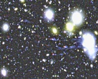 Hilo HI (SPX) Oct 07, 2008 We have all learned how plants and animals evolve over time, adapting and changing to better suit themselves to their environment. Well, the same things happen out in space in much larger and grander proportions galactic in scale. Our Milky Way galaxy is one of billions found in the observable Universe, and an interesting phenomenon is that ALL galaxies evolve by changing shape, size, and color. Understanding the evolutionary processes of galaxies is one of the most important issues in astronomy for which there are still fundamental problems to be solved. One straightforward approach is to study clusters of galaxies that contain several thousands to tens of thousands of galaxies. Galaxy Clusters are dense populations of galaxies, rich with hot intergalactic gas, accompanied by strong gravitational forces. These clusters are the best location to observe environmental effects in galactic evolution. To resolve the effect of the environment on the evolution of galaxies, a team of researchers from the National Astronomical Observatory of Japan and the University of Tokyo used Suprime-cam on the Subaru Telescope to observe the Coma Cluster of galaxies. The Coma Cluster contains over 1,000 galaxies and is fairly close to Earth at about 300 million light-years away. The central portion of the Cluster is inhabited by mostly elliptical galaxies, both dwarfs as well as giants. During observations in 2006 and 2007, it was by chance that astronomers at Subaru discovered a thread-like structure stretching from one of the galaxies. This filament, extending from Galaxy RB199 for about 260 thousand light-years, has many young stars surrounded by ionized gas that look like projectiles flying out from the galaxy. The research team called these knots "fireballs." Detailed study identified several bright knots connected by blue filamentary structures, and the knots were found to be clusters of young stars weighing 10 million Suns and contained in an area about 3,000 to 6,000 light-years across. Because the knots are accompanied by ionized gas, active star formation is going on in the fireballs where usually far less star formation would be expected. The team noted that the size and the mass of the fireballs indicate they could develop into dwarf galaxies. A question that developed during the study was what mechanism(s) stripped gas from Galaxy RB199 and created the fireballs? Because the inside of the cluster is crowded with galaxies, they pass by each other and crash into each other. The team thought that the tidal forces during such encounters could strip gas or stars from the galaxies. They also postulated that as a galaxy falls into the center of the cluster the gravitational forces of the cluster could remove the gas and stars from that galaxy. Both scenarios are possible, however, the research team found that these mechanisms could hardly explain the characteristics of the fireballs. The team then realized that ram pressure stripping occurs when superheated gas (several tens of million Kelvin) in the cluster and the galaxies collide at high speeds. Previous X-ray observation shows the presence of large amounts of hot ionized gas in the middle of the Coma Cluster while RB199 crashes into the center at a speed of 1,200 miles per second, causing strong friction with this hot gas. As such, the team concluded that the ram pressure has enough power to strip the gas from the galaxy AND create the fireballs. This study is the first to demonstrate that stripped gas turns into stars while traveling through remote space. While similar phenomena have been observed in galaxy clusters much further away at several billions light-years, those distant cases were interpreted through witnessing the transitional phase of galaxies changing their morphology or colors as they fall into a cluster. The fireballs discovered by this team of Japanese astronomers provide the first sample of such structures in a nearby cluster. Principal Investigator for the project, Dr. Michitoshi Yoshida said, "The team is confident that our study of these fireball phenomena leads to a better understanding of the gas stripping processes in galaxy clusters, and the effect of clusters on the evolution of individual galaxies." Community Email This Article Comment On This Article Share This Article With Planet Earth