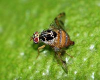 Washington DC (SPX) Feb 04, 2009 For the first time, male flies of a serious agricultural pest, the medfly, have been bred to generate offspring that die whilst they are still embryos. Researchers writing in the open access journal BMC Biology describe the creation of the flies that, when released into a wild population, could out-compete the normal male flies and cause a generation of pests to be stillborn - protecting important crops. Ernst A. Wimmer from the Georg-August-University in Gottingen, Germany, led an international team of researchers who developed the lethal Mediterranean fruit flies (Ceratitis capitata), also known as medfly. He said, "Here, we present the first alternative, radiation-free, reproductive sterility system for medfly based on transgenic embryonic lethality". The medfly is a devastating and economically important pest. The currently used method of controlling it is the sterile insect technique (SIT), whereby male flies are irradiated to induce reproductive sterility and then released into the wild, where competition with fertile males reduces the overall insect population. This radioactive version of the SIT has the drawback that the irradiated males are often less competitive than their wild brethren and so an awkward balance must be stuck between competitiveness and degree of sterility. According to Wimmer, "When transgenic males carrying our transgenic system mate with wild females, all progeny die during embryogenesis without the need for radiation. Due to the complete lethality, no fruit damage from developing larvae will occur and no transgenes can pass into the wild population. Moreover, males carrying this system are highly competitive". In order to suppress the lethality system during rearing of the flies, supplements are added to their food that switch off the genetic self-destruct. The authors write that, "Use of our embryonic lethality system, without the need for radiation, can increase the safety of SIT programs, since accidental releases would not lead to infestations of the environment and possible risks coming from isotopic sources can be eliminated for workers and the environment". Share This Article With Planet Earth