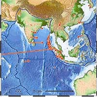 Berkeley CA (SPX) May 20, 2005 The Sumatra-Andaman earthquake that generated a deadly tsunami on Dec. 26 was stronger and slower than most seismologists thought, according to scientists at the University of California, Berkeley, the Wadia Institute of Himalayan Geology in India and the United States Geological Survey (U.S.G.S.). Using data from global positioning system (GPS) stations around the Pacific and Indian oceans, including previously unavailable records from India, the team modeled the fault motions that would produce the observed static ground movements. They concluded that the quake was probably twice as strong as originally estimated - a magnitude 9.15 instead of 9.0 - and that much of the slippage along the fault probably took place more than half an hour after the initial quake and continued as long as three hours afterward. "This could explain why the structural damage from the quake was less than expected, as well as some reports from the Andaman Islands that the subsidence from the quake didn't occur until after the tsunami had hit, more than half an hour after the initial quake," said Roland Burgmann, professor of earth and planetary science at UC Berkeley. Burgmann and colleagues Fred F. Pollitz of the U.S.G.S. in Menlo Park, Calif., and Paramesh Banerjee of the Wadia Institute estimate that average slippage along the entire length of the 1,300-kilometer (800-mile) fault was at least 5 meters (16.5 feet), though the fault may have slipped as much as 20 meters (50 feet) near the southern end where the rupture started. These horizontal displacements, Burgmann said, led to a rearrangement of the Earth's surface, producing measurable deformation as far as 4,500 kilometers (2,800 miles) away. "The Earth is still ringing like a bell today," nearly six months after the earthquake, Burgmann said. "We've never been able to study earthquakes of this magnitude before, where a sizable portion of the Earth was distorted. Normally, we see deformation of the surface a few hundred kilometers away, but here we see deformation 4,500 kilometers away, and five or six times the deformation we've seen in previous quakes." The authors published their findings as part of a series of scientific papers on the record-setting earthquake appearing this week on the Science Express Web site, which provides rapid online access to papers to be published later in the journal Science. The Sumatra-Andaman quake struck Sunday morning, Dec. 26, 2004, at 7:59 a.m. in Southeast Asia, just east of the Sunda trench where the Indian plate ducks under the Burma plate. Starting at the southern end of the subduction zone off Banda Aceh, Northern Sumatra, the ocean floor suddenly plunged northeastward as much as 20 meters under the Burma plate, releasing centuries of strain. As the slippage ripped northwestward for more than 500 kilometers, and perhaps the entire 1,300-kilometer length of the zone, it raised the lip of the Burma plate several meters. The ocean was pushed up a similar amount, generating a traveling tsunami that spread throughout the Indian Ocean and struck the coasts of Sumatra, Malaysia, India and Sri Lanka, killing some 300,000 people. Seismologists immediately gathered data from stations around the world, and initially calculated the magnitude of the quake at 9.0, the largest since the 1964 Alaska quake and the fourth largest since 1900. Subsequent studies looking at long wavelength, low frequency pressure waves from the earthquake have suggested the magnitude was higher, and one subsequent study proposed a 9.3 magnitude, four times stronger than the original 9.0 magnitude estimate. Burgmann and Pollitz used GPS data from 41 stations around Southeast Asia, 36 of them more than 1,000 kilometers (620 miles) from the epicenter, to model the slippage at the plate boundary and estimate the true energy released in the quake, and thus the magnitude. With Banerjee supplying data from 12 Indian GPS stations, it became clear that the quake caused a large area of the Earth's surface to move. At one site 4,500 kilometers from the epicenter, the surface moved a millimeter toward the epicenter. The land shifted eastward a couple of centimeters - nearly an inch - in southern India, which is closer to the epicenter, but less than a centimeter in most areas. Using a model developed by Pollitz that simplifies the Earth as an eight-layered sphere, which is more realistic than standard models that represent the Earth as a uniform body with a flat surface, the researchers estimated the motion near the epicenter and along the rupture that would have produced the measured displacements. Based on a comparison with previous seismologic studies, they concluded that the megathrust quake did not occur all at once, but slipped rapidly at first, then slowed down. "The earthquake lasted at least an hour and perhaps up to three hours, with much of the deformation happening more than one hour after the main shock," Burgmann said. The researchers estimated that as much as 25 to 35 percent of the deformation took place more than an hour later. Much of the later slippage may have been along the northern segment of the subduction zone, the researchers noted, which would explain why the northern part of the rupture zone appears to have contributed little to the tsunami. Because tsunamis depend on how fast the uplift occurs, a slow uplift along the northern segment would not produce a big wall of water. The team also concluded that a later calculation of 9.3 for the magnitude of the Sumatra-Andaman earthquake was an overestimate, probably due to an underestimate of the angle at which the India plate plunges under the Burma plate. Though initially shallow at about eight degrees, the India plate rapidly dips at an angle between 10 and 18 degrees. "The geodesy suggests a much bigger quake than the original estimate of 9.0 but much less than the later 9.3 estimate, which relied on an eight-degree dip," Burgmann said. "Because our models a