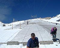 Geneva (AFP) Aug 14, 2008 German researchers trying to slow melting glaciers have set up a large screen in the Swiss Alps that they hope will trap cold air over the icy mass, Johannes Gutenberg University said Thursday. "We hope our installations will bring about a net cooling of the area. And if the melt is not stopped, that it is at least slowed," the project's leader, geography professor Hans-Joachim Fuchs, said in a statement. The structure, 15 metres long and three metres high (49 feet by 10 feet), was raised in the middle of the Rhone glacier in Switzerland's southwestern Valais region by 27 students from the German university. The purpose of the screen -- which sits at an altitude of 2,300 metres -- is to keep cold winds over the glacier. Already successfully tested in a laboratory, the experiment will be studied on site until August 21, according to the university, located in the German city of Mainz. Community Email This Article Comment On This Article Share This Article With Planet Earth