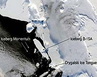 Greenbelt MD (SPX) Dec 24, 2004 What happens when the largest free floating thing on the planet crashes? We might find out in a couple of days. NASA satellites have witnessed a 100-mile-long iceberg near McMurdo Research station move like a battering ram toward Drygalski Ice Tongue. "It's a clash of the titans, a radical and uncommon event," says Robert Bindshadler, a researcher at NASA's Goddard Space Flight Center, and if the two giant slabs of ice collide, we could see one of the best demolition derbies on the planet. When the iceberg and the ice tongue collide, the impact will likely "dent their bumpers," says Bindshadler. The edges could crumple and ice could pile or drift into the Ross Sea. But if the B-15A iceberg picks up enough speed before the two collide, the results could be more spectacular. The Drygalski Ice Tongue could break off. The ice tongue is thick ice that grows out over the Ross Sea from a land-based glacier on Antarctica's Scott Coast. "Ice tongues do break off on occasion," says Bindshadler. "It would only take one thin area on the ice tongue to make it break off." There's no guarantee that the Drygalski Ice Tongue will break off, but "this is the toughest blow it has ever had to deal with." "That Ice tongue has no reason for staying intact" says Waleed Abdalati, researcher with NASA's Goddard Space Flight Center, but Bindshadler points out, it may not break up either. The results depend on the movement of the B-15A iceberg. The B-15A iceberg is a 3,000-square-kilometer (1,200-square-mile) behemoth that has a history of causing problems. It is the largest fragment of a much larger iceberg that broke away from the Ross Ice Shelf in March 2000. Scientists believe that the enormous piece of ice broke away as part of a long-term natural cycle (every 50-to-100 years, or so) in which the shelf, which is roughly the size of Texas, sheds pieces much as human fingernails grow and break off. The berg initially drifted toward McMurdo Sound and grounded near Cape Crozier on Ross Island. It has since broken into pieces, the largest of which is B-15A. This year, B-15A has trapped sea ice in McMurdo Sound. The currents that normally break the ice into pieces and sweep it out into the Ross Sea have not been able to clean out the Sound, so winter's thick ice remains intact. The build-up of ice presents significant problems for Antarctic residents. Penguins must now swim great distances to reach open waters and food. Adult penguins may not be able to make the trip and return with food for their young. As a result, many chicks could starve, says Antarctica New Zealand, the government organization that oversees New Zealand's Antarctic research, in the Associated Press. The National Science Foundation (NSF) officials said that the B-15A iceberg and the frozen Sound will not interfere with supply ship access to McMurdo Station, the U. S. logistics hub for much of the nation's research activity in Antarctica. The U.S. Coast Guard icebreaker Polar Star left Seattle, Washington, on Nov. 4 and should reach the edge of the sea ice around Dec. 27. It will begin immediately to cut a channel in the sea ice for the supply ships. Ironically, a collision between the iceberg and the ice tongue could make things easier for both penguins and ships. If the ice tongue collapses, the way may be opened for sea ice to escape the Sound. There is no guarantee that satellite will see a great demolition because the berg's fate is unclear. The berg's future depends on unpredictable winds, tides and other forces, but possibilities include colliding with the floating Drygalski Ice Tongue, or continuing north, eventually melting. If the collision happens, the impact could come as soon as Dec. 24. If the collision occurs as predicted, this could be an event that we witness again and again. The tides that drive the iceberg's motion tend to push it in circles. "If B-15A bangs the ice tongue once, it could bang it again," says Bindshadler. With multiple daily views of the Ross Sea, NASA satellites will be there to watch the show. Community Email This Article Comment On This Article Related Links SpaceDaily Search SpaceDaily Subscribe To SpaceDaily Express Nuclear Space Technology at Space-Travel.com