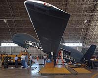 Edward AFB CA (SPX) Oct 23, 2007 The 452nd Flight Test Squadron pushed the RQ-4 Global Hawk Block 20 to its fuel system limits during a weeklong starvation test here in October. The testing involved tilting the aircraft to a 20-degree angle while running the aircraft out of fuel inside the weight and balance hangar. "The testing is very important," said Lt. Col. Andy Thurling, 452nd FLTS commander. "It allows us to know the aircraft's fuel requirements in case of a missed landing. This will allow for longer flights and more efficiency in the air." The Block 20 carries 1,000 pounds more payload and 6,000 pounds more fuel than the Block 10, said Capt. Stephen Leggiero, 773rd Test Squadron project engineer. Because of the increase in weight, additional fuel is required for the aircraft. This means an entirely new fuel cell configuration and fuel management system was necessary. Aside from the starvation testing, the team performed a weight and balance test on the aircraft to determine how changes in fuel weight change the aircraft's center of gravity. During the test, the Global Hawk was weighed then placed on blocks to allow additional ground clearance for the tail of the aircraft. After preparation, the team fired up the engines and began to tilt the aircraft. "We tilted the aircraft at the high 20-degree angle to simulate a go-around situation," said 2nd Lt. Garrison Lindholm, 773rd TS subsystem engineer. A go-around is where the aircraft misses an approach and is required to climb at a steeper attitude, he said. "We wanted to ensure that at the steep deck angle, the pumps would not create an engine flame out resulting in engine failure," Lieutenant Lindholm said. The main parameter for testing was weight, he said. The testers initially weighed the aircraft to determine its gross weight. The team then weighed the aircraft again as it began to show signs of starvation, Captain Leggiero said. This was to measure the amount of fuel in the tank when fuel starvation began. During the testing, the team used a synthetic fuel called Isopar-M instead of standard JP-8 fuel for safety purposes. The JP-8 has a lower flash point, which is the point where fuel ignites. "Overall, the testing went very smoothly," Captain Leggiero said. "It really highlights some of the fantastic infrastructure we have on base, and the wonderful people who pulled together to make things happen." Community Email This Article Comment On This Article Related Links UAV News - Suppliers and Technology