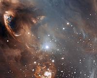 Newborn Stars Wreak Havoc In Their NurseryParis, France (SPX) Mar 17, 2011 A new image from ESO's Very Large Telescope gives a close-up view of the dramatic effects newborn stars have on the gas and dust from which they formed. Although the stars themselves are not visible, material they have ejected is colliding with the surrounding gas and dust clouds and creating a surreal landscape of glowing arcs, blobs and streaks. The star-forming region NGC 6729 is part o ... read more |