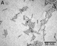 Jerusalem (SPX) Jun 21, 2004 "Nanodumbells" � gold-tipped nanocrystals which can be used as highly-efficient building blocks for devices in the emerging nanotechnology revolution � have been developed by researchers at the Hebrew University of Jerusalem. The technology, developed by a research group headed by Prof. Uri Banin of the Department of Physical Chemistry and the Center for Nanoscience and Nanotechnology of the Hebrew University, is described in an article in the current issue of Science magazine. The nanodumbells � shaped somewhat like mini-weightlifting bars � offer a solution to problems of building new, nanocrystal transistors, the basic component of computer chips. Semiconductor nanocrystals are tiny particles with dimensions of merely a few nanometers. A nanometer (nm) is one-billionth of a meter, or about a hundred-thousandth of the diameter of a human hair. These nanocrystals exhibit unique optical and electrical properties that are controlled by modifying their particle size, composition and shape, creating promising building blocks for future nanotechnology devices, such as mini-computers, nanosensors for chemical and biological molecules, novel solar-cell devices, or for various biomedical applications. The challenge that lies ahead in adapting these nanocrystals to real-world application lies in wiring them to operate in electronic circuits. How, in the manufacturing process, will it be possible to join billions of them together and incorporate them into a single, integrated, electrical circuit? Another problem is that of establishing good electrical contact in order to ensure speedy and faultless channels of communication. The new technology developed by Prof. Banin and his team provides the solution to these two limiting problems. They succeeded in attaching gold tips onto nanorods by a simple chemical reaction. The resultant structure resembles a nanodumbbell, in which the central, nanocrystal, semiconductor part of the rod is linked via a strong chemical bond to the gold tips. These nanodumbbells provide strong chemical bonds between the gold and the semiconductor, leading to good electrical connectivity. This provides the path towards solving the problem of wiring the nanocrystals intro electrical circuitry. The chemical bonding quality of the gold also helps solve the difficulties involved in manufacturing simultaneously up to billions of circuits. By adding to the nanodumbbell solution specific "linker" molecules, the gold tips are attracted to each other, thus creating self-assembling chain structures of nanocrystals, linked end-to-end. This strategy can serve as the basis for future manufacturing that will connect billions of nanorods to nanoelectronic circuitry. It is also possible to create other shapes, such as tetrapods, in which four arms expand from a central unit, making gold-tipped "anchor" points for different forms of self-assembly and wiring. This development will speed up the integration of semiconductor nanorods and tetrapods into real-world nanoelectronic applications. Community Email This Article Comment On This Article Related Links Hebrew University of Jerusalem SpaceDaily Search SpaceDaily Subscribe To SpaceDaily Express Nano Technology News From SpaceMart.com Computer Chip Architecture, Technology and Manufacture
