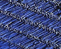 Gaithersburg MD (SPX) Nov 11, 2004 Researchers at the National Institute of Standards and Technology have demonstrated a technique for growing well-formed, single-crystal nanowires in place - and in a predictable orientation - on a commercially important substrate. The method uses nanoparticles of gold arranged in rows on a sapphire surface as starting points for growing horizontal semiconductor "wires" only 3 nanometers (nm) in diameter. Other methods produce semiconductor nanowires more than 10 nm in diameter. NIST chemists' work was highlighted in the Oct. 11 issue of Applied Physics Letters. Part of the vision of nanotechnology is the possibility of building powerful, extraordinarily compact sensors and other devices out of atomic-scale components. So-called "nanowires" - long thin crystals of, e.g., a semiconductor - could not only link nanoelectronic devices like conventional wire but also function as devices themselves, tipped with photodetector or light-emitting elements, for example. An obvious stumbling block is the problem of working with components so small that only the most sophisticated measurement instruments can even track them. To date, the most successful nanowire alignment method involved growing large numbers of the rod-like crystals on a suitable base like blades of grass, shearing them off, mixing them in a solvent, and forcing them to align by either flow or surface confinement on the test substrate to orient most of the crystals in a specific horizontal direction. Further photolithography steps are required to ensure that nanowires are positioned correctly. In contrast, the NIST technique grows arrays of nanowires made of zinc oxide, a semiconductor widely used in optoelectronics, with precise alignments. The gold "anchors" are placed with a chemical etching step and the orientation of the wires - horizontal, vertical or at a 60 degree angle from the surface - is determined by tweaking the size of the gold particles. Community Email This Article Comment On This Article Related Links NIST SpaceDaily Search SpaceDaily Subscribe To SpaceDaily Express Nano Technology News From SpaceMart.com Computer Chip Architecture, Technology and Manufacture