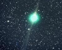 Science@NASA Huntsville AL (SPX) Feb 05, 2009 In 1996, a 7-year-old boy in China bent over the eyepiece of a small telescope and saw something that would change his life--a comet of flamboyant beauty, bright and puffy with an active tail. At first he thought he himself had discovered it, but no, he learned, two men named "Hale" and "Bopp" had beat him to it. Mastering his disappointment, young Quanzhi Ye resolved to find his own comet one day. And one day, he did. Fast forward to a summer afternoon in July 2007. Ye, now 19 years old and a student of meteorology at China's Sun Yat-sen University, bent over his desk to stare at a black-and-white star field. The photo was taken nights before by Taiwanese astronomer Chi Sheng Lin on "sky patrol" at the Lulin Observatory. Ye's finger moved from point to point--and stopped. One of the stars was not a star, it was a comet, and this time Ye saw it first. Comet Lulin, named after the observatory in Taiwan where the discovery-photo was taken, is now approaching Earth. "It is a green beauty that could become visible to the naked eye any day now," says Ye. "My retired eyes still cannot see the brightening comet," says Newton, "but my 14-inch telescope picked it up quite nicely on Feb. 1st." The comet makes its closest approach to Earth (0.41 AU) on Feb. 24, 2009. Current estimates peg the maximum brightness at 4th or 5th magnitude, which means dark country skies would be required to see it. No one can say for sure, however, because this appears to be Lulin's first visit to the inner solar system and its first exposure to intense sunlight. Surprises are possible. Lulin's green color comes from the gases that make up its Jupiter-sized atmosphere. Jets spewing from the comet's nucleus contain cyanogen (CN: a poisonous gas found in many comets) and diatomic carbon (C2). Both substances glow green when illuminated by sunlight in the near-vacuum of space. In 1910, many people panicked when astronomers revealed Earth would pass through the cyanogen-rich tail of Comet Halley. False alarm: The wispy tail of the comet couldn't penetrate Earth's dense atmosphere; even it if had penetrated, there wasn't enough cyanogen to cause real trouble. Comet Lulin will cause even less trouble than Halley did. At closest approach in late February, Lulin will stop 38 million miles short of Earth, utterly harmless. To see Comet Lulin with your own eyes, set your alarm for 3 am. The comet rises a few hours before the sun and may be found about 1/3rd of the way up the southern sky before dawn. Here are some dates when it is especially easy to find: Feb. 6th: Comet Lulin glides by Zubenelgenubi, a double star at the fulcrum of Libra's scales. Zubenelgenubi is not only fun to say (zuBEN-el-JA-newbee), but also a handy guide. You can see Zubenelgenubi with your unaided eye (it is about as bright as stars in the Big Dipper); binoculars pointed at the binary star reveal Comet Lulin in beautiful proximity. [sky map] Feb. 16th: Comet Lulin passes Spica in the constellation Virgo. Spica is a star of first magnitude and a guidepost even city astronomers cannot miss. A finderscope pointed at Spica will capture Comet Lulin in the field of view, centering the optics within a nudge of both objects. [sky map] Feb. 24th: Closest approach! On this special morning, Lulin will lie just a few degrees from Saturn in the constellation Leo. Saturn is obvious to the unaided eye, and Lulin could be as well. If this doesn't draw you out of bed, nothing will. [sky map] Ye notes that Comet Lulin is remarkable not only for its rare beauty, but also for its rare manner of discovery. "This is a 'comet of collaboration' between Taiwanese and Chinese astronomers," he says. "The discovery could not have been made without a contribution from both sides of the Strait that separates our countries. Chi Sheng Lin and other members of the Lulin Observatory staff enabled me to get the images I wanted, while I analyzed the data and found the comet." Somewhere this month, Ye imagines, another youngster will bend over an eyepiece, see Comet Lulin, and feel the same thrill he did gazing at Comet Hale-Bopp in 1996. And who knows where that might lead...? "I hope that my experience might inspire other young people to pursue the same starry dreams as myself," says Ye. Share This Article With Planet Earth