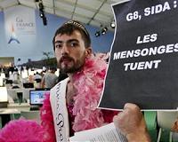 Drag queen breaches G8 to protest unkept AIDS promisesDeauville, France (AFP) May 26, 2011 A bearded drag queen in a sequin dress and pink boa made a surprise appearance at the G8 summit on Thursday to slam leaders' unkept promises to provide AIDS treatment around the world. A small group of protesters handed out flyers announcing "Miss Promise - guest of honour at the G8" and "Unkept promises are promises that kill" inside the tightly secured press room in the France's northern ... read more |