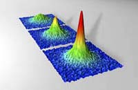 Chicago IL (SPX) Feb 02, 2005 A new study has disclosed perhaps the strongest evidence to date for superfluidity in an exotic gas that mimics extreme behavior in Nature - ranging from high temperature superconductivity to the behavior of fundamental particles in the Big Bang, when the universe is believed to have begun in a huge burst of energy within a very small space. Although the gas was trapped by a laser beam within billionths of a degree of absolute zero, the lowest possible temperature, researchers said it behaved like a superfluid flowing at high temperatures. In a report published in the Thursday Jan. 27, 2005, Science Express, the online version of the research journal Science, experimentalists from Duke University and theorists from the University of Chicago noted a striking change in the ability of this "strongly interacting Fermi gas" to take in heat energy. That change suggests the gas of lithium-6 atoms had undergone a phase change into a novel superfluid state - bolstering previous evidence for the observation of this state of frictionless flow. A phase change is a drastic alteration in properties of a sample of matter when it transitions from one form to another - for example, the changing of liquid water into steam. "The temperature at which we were seeing this abrupt change is very close to where the Chicago group predicted there ought to be a transition to a superfluid," said John Thomas, the Fritz London Distinguished Professor of Physics at Duke, in an interview. "And the behavior of the gas closely corresponded with their predictions of what would occur when the energy was added." The report's principal author is Joe Kinast, a doctoral student in Thomas' Duke laboratory. Other authors include Thomas, his postdoctoral research associate Andrey Turlapov, University of Chicago physics professor Kathryn Levin, her post-doctoral associate Qijin Chen and her former graduate student Jelena Stajic. The research was funded by the United States Department of Energy, the U.S. Army Research Office, the National Science Foundation and NASA. A Fermi gas is one composed of "fermions," a class of standoffish atoms known for keeping more of a distance from each other than the other gregarious class of atoms known as "bosons," Thomas said. Boson atoms readily condense as single particles into a superfluid, a medium that flows without friction. Superfluids made of bosonic atoms can exhibit properties that seem straight out of science fiction. If placed in an open container, for example, such superfluid matter would spontaneously rise up the sides and flow over the top. Fermions, in contrast to bosons, cannot become a superfluid made of single particles. But scientists have found evidence that fermionic atoms can join in pairs analogous to the weakly bound electron pairs that conduct current without resistance in conventional superconductors. Such fermion pairs effectively behave as bosons that, in turn, can transition into a superfluid. However, the novel superfluid state this study described is special, because the lithium-6 atoms appear to form very tightly bound pairs. "Both theory and experiment suggest that the superfluidity the (Duke) group detected is different from what has been seen in the past," said Levin. "In this particular gas the interactions are so strong that the fermions like to have partners � to pair up into bosons � even when they are not a superfluid." This kind of superfluidity can be used to model long-sought superconductors that could conduct electricity without resistance at room temperatures or higher, Thomas said. It could model such "hot" superconductivity even though the superfluid carries no electrical current as a real superconductor would. "But, in an analogous way, the particles flow without friction," he added. For several years, evidence has been mounting that the unique Fermi gas the Duke and Chicago groups studied can exist as a superfluid. In a previous November, 2002 report in Science Express, Thomas's group reported the first observation of this unique strongly interacting lithium-6 gas. It also described a startling lopsided "shape-shifting" when the gas was released from confinement. Instead of expanding uniformly, the gas expanded in a lopsided manner. In that study, the researchers used a laser beam trap to confine and cool lithium-6 atoms to a "degenerate" state well below their "Fermi temperature." The Fermi temperature is the point where antisocial fermion atoms begin to approach each other as closely as laws of physics allow. They reach a degenerate state on further cooling. When a magnetic field of a certain value is applied at low temperatures, these maximally squeezed atoms become "strongly interacting," meaning that they can influence each other over exceptionally large distances. In the earlier experiments, when the Duke scientists released the gas from its laser trap at temperatures estimated at only 50 billionths of a degree warmer than absolute zero, they observed the gas rearranging itself in an unusual way. It exploded outward in one direction while not changing its shape in the other. In 2002, theorists at the University of Trento in Italy suggested that this "anisotropic" shape change could provide evidence for the fermion atoms achieving superfluidity. Another April, 2004 report by Thomas's group in the journal Physical Review Letters found further evidence for superfluidity in the wiggling, jelly-like behavior of the confined gas. In their new Science Express report, Kinast and his fellow researchers noted that the previously observed lopsided expansion mimics the "elliptical flow" of quark-gluon plasmas under study at the Relativistic Heavy Ion Collider at Brookhaven National Laboratory. Such exotic plasmas of charged and colossally-heated fundamental particles are theorized to have existed a split second after the Big Bang. The new report by the Duke and Chicago groups examined with unprecedented precision how a co