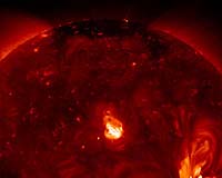 Greenbelt MD (SPX) Dec 07, 2007Imagine you are sitting around a campfire. Move closer to the fire, and you get hotter. Move away, and you get cooler. Pretty basic, right? Well, the closest star, our sun, doesn't seem to be getting this. As you move away from the solar surface, into the sun's outer atmosphere, the corona, it actually gets a lot hotter before it cools off. The solar surface is about 10,000 degrees Fahrenheit, while temperatures in the corona soar to millions of degrees. |