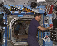 Houston TX (UPI) Oct 03, 2006 NASA says the Expedition 14 International Space Station crew is performing routine station maintenance and cleaning as it begins its 6-month duty period. European Space Agency flight engineer Thomas Reiter of Germany finished his third and final day Monday of a kidney stone experiment session. That long-range investigation involves taking a daily ingestion of either potassium citrate or a placebo and is designed determine whether potassium citrate is effective in preventing formation of kidney stones in space. Cmdr. Michael Lopez-Alegria is continuing work this week on station computers by reloading them with updated software, the National Aeronautics and Space Administration said. The software upgrades included a new Inventory Management System and new client and file server versions. The software reloads involved nine "client" laptops and a file server laptop.