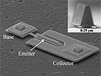 Champaign - Nov 10, 2003 Researchers at the University of Illinois at Urbana-Champaign have broken their own record for the world's fastest transistor. Their latest device, with a frequency of 509 gigahertz, is 57 gigahertz faster than their previous record holder and could find use in applications such as high-speed communications products, consumer electronics and electronic combat systems. "The steady rise in the speed of bipolar transistors has relied largely on the vertical scaling of the epitaxial layer structure to reduce the carrier transit time," said Milton Feng, the Holonyak Professor of Electrical and Computer Engineering at Illinois, whose team has been working on high-speed compound semiconductor transistors since 1995. "However, this comes at the cost of increasing the base-collector capacitance. To compensate for this unwanted effect, we have employed lateral scaling of both the emitter and the collector." Feng and graduate students Walid Hafez and Jie-Wei Lai fabricated the high-speed devices in the university's Micro and Nanotechnology Laboratory. Unlike traditional transistors, which are built from silicon and germanium, the Illinois transistors are made from indium phosphide and indium gallium arsenide. "This material system is inherently faster than silicon germanium, and can support a much higher current density," Feng said. "By making the components smaller, the transistor can charge and discharge more quickly, creating a significant improvement in speed." During the past year, high-speed transistor records have fallen like dominoes on the Illinois campus. In January, Feng's group announced a transistor with a 150-nanometer collector and a top frequency of 382 gigahertz. In May, the group reported a 452-gigahertz device with a 25-nanometer base and a 100-nanometer collector. Further scaling reduced the collector size to 75 nanometers, resulting in a 509-gigahertz device, announced last month. In addition to using a high-speed material system and smaller device components, another technique the researchers employed to boost transistor speed utilized a narrow metal bridge to separate the base terminal from the device connector post. "Normally in transistors the contact size is bigger than the transistor itself," Feng said. "Our micro-bridge eliminates the parasitic base to collector capacitance that is inherent with designs that use large base contact posts. By isolating the base, we can achieve higher current density and faster device operation." Faster transistors would enable the creation of faster computers and video games, more flexible and secure wireless communications systems, and more rapid analog-to-digital conversion for use in radar and other electronic combat systems. "Further vertical scaling of the epitaxial structure, combined with lateral device scaling, should allow devices with even higher frequencies," Feng said. "Our ultimate goal is to make a terahertz transistor." Community Email This Article Comment On This Article Related Links Electrical and Computer Engineering at UI SpaceDaily Search SpaceDaily Subscribe To SpaceDaily Express Space Technology News - Applications and Research