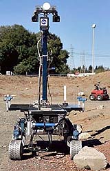 Washington DC (SPX) Oct 07, 2005 Meet Gromit and K-9. They are the two latest robots NASA is using to help improve space exploration. Although they may look similar to the robots already on Mars, Gromit and K-9 have much more complex, built-in intelligence. Loaded with sophisticated software, cameras and spectrometers, these robots can do in 15 minutes what now takes three days. Dr. Liam Pederson is a researcher for NASA. "So that robot there can go to one rock every 15 minutes and actually go to a whole bunch of them and really systematically explore Mars and look for life in a manner which we can't yet do with the vehicles there." The new robots can take samples, gather information and record images. The data can be sent back to Earth almost instantaneously, giving scientists vital information much more quickly. Gromit can even talk with astronauts by voice recognition. The goal is to develop many more high-tech robots before the next mission to the moon in roughly 12 more years. If successful, the robots will have enough autonomy and artificial intelligence to take space exploration further than ever before. NASA scientist David Smith explains. "That's really our job here is to do the stuff that's, you know, out a little bit beyond the horizon and demonstrate that we can actually make it work." The robots will be able to build habitats for future human pioneers, pinpoint promising target regions for joint human-machine exploration and even warn of potentially dangerous areas that might be OK for a machine, but too perilous for humans to approach. Community Email This Article Comment On This Article Related Links SpaceDaily Search SpaceDaily Subscribe To SpaceDaily Express All about the robots on Earth and beyond!