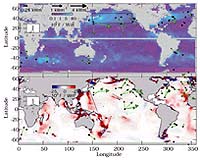 Seattle - Jun 30, 2003 When internal waves up to 300 feet first form they cause a mighty churning of ocean waters � something invisible to and unfelt by anyone at the surface. Now in a novel use of mooring data, some of it three decades old, a University of Washington researcher has calculated just how much punch these waves appear to carry as they travel, or propagate, thousands of miles from where they originate. It's energy that appears to be crucial to the conveyor-belt-like circulation wherein millions of cubic meters of icy-cold water sink each second at high latitudes and are driven to upwell at lower latitudes. Without such upwelling, global ocean circulation would stall, causing the entire ocean to fill with cold water. Further, nutrients that have drifted down to the ocean depths would remain in the deep instead of being carried back to surface waters for use by plankton, the tiny plants and animals on which all other marine life depend and which greatly affect how much carbon dioxide is absorbed and released by the oceans. Internal waves are just like waves one sees breaking on beaches except they occur completely below the surface. For the most energetic such waves, which get started either during stormy weather or when tides pull water across especially rough places on the seafloor, up to 50 percent of their original energy can be carried far away as the waves undulate through the ocean depths, according to Matthew Alford, an oceanographer with the University of Washington's Applied Physics Laboratory. That's important because climate modelers need to know all the key factors that affect ocean mixing that occurs at mid-latitudes. Previous measurements and calculations by Alford, and by National Aeronautics and Space Administration and Oregon State University scientists, show that internal waves have the 2 trillion watts that would account for such ocean mixing. Alford provides the first glimpse of how much of that energy actually makes it very far from where the waves originate. "The fluxes . . . are large enough to transport, across ocean basins, globally significant amounts of energy available for mixing," Alford wrote in the journal Nature last month. "Global mapping of their fluxes is an important step in determining how and where internal-wave mixing is accomplished." Alford, an Office of Naval Research Young Investigator, combed historical data from more than 1,000 moorings � some used for projects as far back as 1973. Sixty had instruments at the right depths and collected data for long enough, at least a winter, for Alford's purposes. Moorings provide fair coverage of ocean waters in the North Atlantic and Pacific but very poor coverage in low latitudes in the Southern Hemisphere, he says, something that could be considerably improved by deploying several well-placed moorings in the future. He found that the kind of internal waves caused by tidal forces pulling water across underwater ridges, shoals, channels and other rough places on the seafloor, for example around the Hawaiian Islands, carry 30 percent to 50 percent of their energy directly away from their sources, a process that goes on year-round. A second type of internal waves, one caused by sudden wind events and storms, appear to carry at least 15 percent to 20 percent of the energy input from where they originate, mainly during the stormy months of winter, and that energy is usually directed toward mid-latitudes areas. Alford says the focus in recent years has been on the importance of internal waves generated by internal tides, whereas his work suggests that internal waves generated by winds are just as significant. apl.washington.edu Letters to Nature: "Redistribution of energy available for ocean mixing by long-range propagation of internal waves," May 8, 2003, Alford is the sole author; http://www.nature.com/ "Letter to Nature: Significant dissipation of tidal energy in the deep ocean inferred from satellite altimeter data," June 15, 2000, Richard Ray of NASA Goddard Space Flight Center and Gary Egbert of Oregon State University Community Email This Article Comment On This Article Related Links University of Washington SpaceDaily Search SpaceDaily Subscribe To SpaceDaily Express Dirt, rocks and all the stuff we stand on firmly