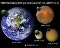 Moffett Field CA (SPX) Oct 07, 2009 A new study by the University of Puerto Rico at Arecibo shows the first quantitative evaluation of planetary habitability. The study identifies some potential habitats in the solar system and also shows how the habitability of our planet has changed in the past, with some periods being even better than today. Abel Mendez presented his results on Monday, October 5, at the 41st Annual Meeting of the Division for Planetary Sciences of the American Astronomical Society in Fajardo, Puerto Rico. The study of planetary habitability has become more important with climate change and so has the search for habitable environments in the solar system and beyond. Many environmental factors control the habitability of a planet in complex ways, but a direct assessment of the habitability of a planet has been a continuous problem in planetary sciences. "It is surprising that there is no agreement on a quantitative definition of habitability. There are well-established measures of habitability in ecology since the 1970s, but only a few recent studies have proposed better alternatives for the astrobiology field, which is more oriented to microbial life. However, none of the existing alternatives from the fields of ecology to astrobiology has demonstrated a practical approach at planetary scales," said Mendez, a biophysicist from the Department of Physics and Chemistry. Mendez's approach to the study of planetary habitability started with the development of a Quantitative Habitability Theory (QH Theory) to assess the current state of terrestrial habitability and to establish a baseline for relevant comparisons with past or future climate scenarios and other planetary bodies including extrasolar planets. "QH Theory is based on two new biophysical parameters: the habitability H, as a relative measure of the potential for life of an environment, or habitat quality, and the habitation M, as a relative measure of biodensity, or occupancy. Both parameters are related to other physiological and environmental variables and can be used to make predictions about the distribution, abundance, and productivity of primary producers, such as plants and phytoplankton, and microbial life in general. Initially, habitability was modeled from the environment's temperature and humidity because they are easier to measure at planetary scales with ground or orbital instruments. Global habitability and habitations maps were constructed of terrestrial land and ocean areas with data gridded at various spatial and temporal resolutions. Preliminary work shows that the QH Theory is comparable to existing models in predicting terrestrial primary productivity," said Mendez. "This work is important because it provides a quantitative measure for comparing habitability," said Chris McKay, of NASA Ames Research Center. "It provides an objective way to compare different climate and planetary systems." Studies about the effects of climate change on life are of special interest to the scientific community and to the general public. One of the goals of Mendez's studies is to trace the evolution of terrestrial habitability from paleoclimates to global warming. "The biophysical quantity Standard Primary Habitability (SPH) was defined as a base for comparison of the global surface habitability for primary producers. The SPH is always an upper limit for the habitability of a planet but other factors can contribute to lower its value. The current SPH of our planet is close to 0.7, but it has been up to 0.9 during various paleoclimates, such as during the late Cretaceous period when the dinosaurs went extinct. I'm now working on how the SPH could change under global warming," said Mendez. "This methodology could also be extended to studies of planets around other stars that may be found during the next two decades," said geoscientist James Kasting at Penn State University. The search for habitable environments in the universe is one of the priorities of the NASA Astrobiology Institute and other international organizations. The studies of Mendez also focus on the search for life in the solar system including extrasolar planets. "Various planetary models were used to calculate and compare the habitability of Mars, Venus, Europa, Titan, and Enceladus. Interestingly, Enceladus resulted as the object with the highest subsurface habitability in the solar system, but too deep for direct exploration. Mars and Europa resulted as the best compromise between habitability and accessibility. In addition, it is also possible to evaluate the global habitability of any detected terrestrial-size extrasolar planet in the future. Further studies will expand the habitability definition to include other environmental variables such as light, carbon dioxide, oxygen, and nutrients concentrations. This will help expand the models, especially at local scales, and thus improve its application in assessing habitable zones on Earth and beyond," said Mendez. "I was pleased to see Enceladus come out the winner," McKay stated. "I've thought for some time that it was the most interesting world for astrobiology in the solar system." Mendez is currently starting collaborative efforts in this line of research with other scientists from the University of Puerto Rico at Rio Piedras and Mayaguez, NASA Ames, the SETI Institute, and other national and international institutions. His studies were supported by the University of Puerto Rico at Arecibo and NASA Astrobiology Institute MIRS Program. Share This Article With Planet Earth