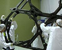 Greenbelt MD (SPX) Jan 31, 2007 The "spine" of the James Webb Space Telescope, called the backplane, is in great health for space, according to scientists and engineers. Recent tests show that the backplane, which supports the big mirrors of the telescope, can handle its trip into space and operate correctly when the observatory launches in 2013. The James Webb Space Telescope (JWST) will explore many wonders in space - from distant galaxies to nearby planets and stars. From the first light after the Big Bang to the formation of star systems that can support life on planets like Earth, JWST will give scientists clues about the formation of the universe and the evolution of our own solar system. The telescope is as big as a two-story house and involves 10 different technologies. Engineers thoroughly test each of them to make sure that it can do what it's intended to do, and that it can survive the trip into space and a life in the harsh space environment. The technologies are both hardware (like the backplane) and computer software. The backplane endured freezing conditions during the "health tests" at NASA's Marshall Space Flight Center in Huntsville, Ala. It is the largest structure ever tested in freezing temperatures, a necessary step to make sure it won't move in extreme cold. "We need it to hold steady while we're observing," said Dr. John Mather, JWST Senior Project Scientist at NASA's Goddard Space Flight Center in Greenbelt, Md. "These tests show that it will do that," he said. The movements were so small they were measured in nanometers (one nanometer is smaller than a human hair). The backplane was tested in cold as low as minus 405 degrees Fahrenheit (30 Kelvin) to minus 351 Fahrenheit (60 Kelvin) over periods lasting two to three days. From late June through mid-September, the tests took place in a special vacuum chamber at Marshall's X-Ray Calibration Facility. All of the JWST technologies have to pass this same test. If they all pass, it means these hardware and software systems can handle their space trip and work in space. Scientists and engineers then "engineer" them, or apply them, to make them work with other technologies on JWST. Northrop Grumman Corporation leads a team that is designing and building JWST under a contract with NASA. "These results represent a tremendous achievement for the JWST team," noted Martin Mohan, Northrop Grumman's JWST program manager. "The backplane performed even better than expected and demonstrates the telescope's ability to stay accurately focused." Community Email This Article Comment On This Article Related Links James Webb Space Telescope at NASA Goddard Space Flight Center All about the technology of space and more Space Telescope News and Technology at Skynightly.com