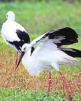 Tokyo (AFP) Sep 24, 2005 Five artificially bred white storks flew into open skies from a Japanese park Saturday as part of a half-century effort to protect and return the endangered species to the wild, officials said. "All the five took off just fine," said an official at a protection centre for the endangered storks in Hyogo prefecture in western Japan. Prince Akishino, the second son of Emperor Akihito, and Akishino's wife Kiko cut a red-and-white ribbon to open a box and release the first of the five storks in a ceremony joined by 200 academics, politicians and local officials. Thousands of spectators applauded and cheered as the white birds with black-hemmed wings were released. It was the first time that artificially-bred oriental white storks had been released in an attempt to bring them back to the wild, the park said. It was also the first time in more than three decades that the birds had flown in Japanese skies as the last domestic wild stork died shortly after being taken into protective captivity in 1971. "As there are no boundaries for birds, I hope the day will come when we see oriental white storks flitting about in Northeast Asia," Hyogo Governor Toshizo Ido said after the release. There are only about 2,000 oriental white storks in the world, the majority of them in Russia and China. Japan designated the storks as a national treasure in 1956 as their numbers plunged following rapid urban development and increasing pollution. The state and Toyooka city in Hyogo started projects to breed the bird in the 1960s. The first success came in 1989 using a pair donated by the then Soviet Union. The five storks released Saturday were three females and two males born between 1998 and 2003 which had been trained to fly and feed themselves in order to survive in the wild. Each of them is carrying an 80-gram (2.8 ounce) tracking device on their back which will send data to a US weather satellite 850 kilometers (530 miles) above Earth. The data will then be passed to Japanese researchers via the Internet. Community Email This Article Comment On This Article Related Links SpaceDaily Search SpaceDaily Subscribe To SpaceDaily Express Darwin Today At TerraDaily.com