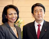 Tokyo (AFP) Oct 19, 2006 Japan and the United States agreed in top-level talks Thursday to strengthen their military alliance and step up work on missile defense due to the threat from nuclear neighbor North Korea. Prime Minister Shinzo Abe, a conservative who took office last month, backed a tough line on North Korea as he met with US Secretary of State Condoleezza Rice, who is on a four-nation tour in the wake of Pyongyang's nuclear test. "Japan will make an effort to strengthen the Japan-US alliance, including on missile defense," Abe told Rice, according to Abe's adviser Hiroshige Seko, who also attended the meeting. Rice in turn said that "strengthening and modernizing the US-Japan alliance will be a base of responding to this situation" with North Korea, Seko said. US State Department spokesman Sean McCormack said that Abe and Rice "talked about the importance of cooperative defense measures such as intelligence-sharing and missile defense." More than any other country, Japan feels a direct threat from North Korea, which fired a missile over its main island in 1998. The 1998 incident led the United States and Japan to team up to build a missile defense shield. The US military also installed Patriot surface-to-air missiles in Japan after North Korea test-fired seven missiles in July. Abe, who rose to popularity by campaigning against North Korea, has championed a greater military role for Japan, which was forced by the United States to renounce the right to wage war after defeat in World War II. US and Japanese officials said Abe and Rice agreed on the need to enforce sanctions on North Korea imposed last week by the UN Security Council. "North Korea must understand that things will get worse if it fails to respond to the international community's concerns," Abe was quoted by Seko as telling Rice. Rice had promised, after arriving Wednesday in Japan, that the United States was prepared to use the "full range" of its military to defend its allies. North Korea's nuclear test last week has raised US fears of a nuclear arms race in East Asia and led to calls in Japan to debate the long-taboo idea of building its own atomic weapons. Rice reaffirmed to Abe that "the United States regards Japan's security as US security," Seko said. "She said that North Koreans should not believe they can change the security environment and that the Japan-US alliance has an ability to respond to their challenge," Seko said. Abe has repeatedly ruled out acquiring nuclear weapons, but others in his ruling party, including Foreign Minister Taro Aso, have said the long-taboo option should at least be discussed. Hiroshi Suzuki, the deputy cabinet secretary for public relations, played down the attention given to the calls to debate the nuclear option. "Despite many reports inside and abroad suggesting that there could be a possible review, the Japanese government strictly upholds and adheres to its three non-nuclear principles" of not producing, possessing or allowing entry of nuclear weapons onto its territory, Suzuki said. Rice was the first high-ranking US official to meet Abe since he took office last month, succeeding his mentor, Junichiro Koizumi, who was one of US President George W. Bush's closest foreign allies. "Congratulations," Rice said to Abe in front of cameras as she entered his office. Abe asked Rice to tell Bush that he is "looking forward to" holding their first summit on the sidelines of an Asia-Pacific summit in Vietnam in November. In a meeting Wednesday with Aso, Rice praised Abe for visiting China and South Korea last week in a bid to improve ties that were tense under Koizumi, according to another Japanese official at the talks.