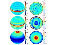 Tuscon AZ (SPX) Oct 14, 2008 Turbulence generated by thunderstorms can drive the multiple east-west jet streams on the giant planets -- Jupiter, Saturn, Uranus, and Neptune -- and explain a long-standing conundrum concerning the puzzling differences between the innermost two planets, Jupiter and Saturn, and the outermost two, Uranus and Neptune. Scientists have been trying to understand the mechanisms that form the jet streams and control their structure since the first high-resolution images of the giant planets were returned by the Pioneer and Voyager spacecrafts in the 1970s and 1980s. The jet streams are narrow rivers of air that flow east-west. On Earth, they are major component of our planet's global circulation and control much of the large-scale weather experienced by the United States and other countries outside of the tropics. Analogous jet streams dominate the circulation of Jupiter, Saturn, Uranus, and Neptune, reaching up to 400 miles per hour on Jupiter and nearly 900 miles per hour on Saturn and Neptune. The question of what causes these jet streams and sets their structure remains one of the most important unsolved problems in the study of planetary atmospheres. Yuan Lian and Adam Showman of The University of Arizona showed how storms can generate the jet streams at the 40th annual meeting of Division of Planetary Sciences of the American Astronomy Society in Ithaca, NY. Lian is a graduate student and Showman is a professor at the university, which is based in Tucson, Arizona. Lian and Showman performed state-of-the-art computer simulations showing how moist convection -- essentially, thunderstorms -- can produce patterns of jet streams resembling those on the four giant planets. In the simulations, condensation of water vapor generates small hurricane-like storms, which interact with each other to form global jet streams. The study is the first to self-consistently describe both the generation of these storms and their interaction with the global circulation. "Thunderstorms have been known to exist on Jupiter and Saturn since the early 1980s, and it has repeatedly been proposed that they drive the jet streams on these planets, but before now this idea had never been adequately tested," said Lian. "We showed that such storms can indeed drive jet streams similar to those observed." A long-standing puzzle is the dichotomy between sister planets Jupiter and Saturn on the one hand and Uranus and Neptune on the other. "Unlike Earth, Jupiter and Saturn have about 20 jet streams each, which are associated with the banded cloud patterns on those planets," said Showman. "In contrast, Uranus and Neptune have only three jet streams each. Another conundrum is that the jet stream on the equator flows eastward on Jupiter and Saturn but westward on Uranus and Neptune. Understanding that dichotomy has been a hard nut to crack." The simulations successfully produced about 20 jet streams each for Jupiter and Saturn and three jet streams each for Uranus and Neptune, consistent with observations. Moreover, the simulations were able to explain the direction of the equatorial winds on all four planets -- eastward on Jupiter and Saturn but westward on Uranus and Neptune. "Previous investigations generally predicted that the equatorial jet stream would have the same direction on all four planets, inconsistent with observations," added Lian. "Our study is among the first to provide an explanation for these differences." In the simulations, the differences are controlled by the abundance of water vapor, which is modest on Jupiter and Saturn but expected to be large on Uranus and Neptune. The storms produced in the simulations also bear an encouraging resemblance to those observed on Jupiter and Saturn, Showman noted. Lian cautioned that much work remains to be done. "Our study provides a mechanism that can generate the jets on the giant planets. However, the wind speeds in our computer simulations are generally too weak. Overcoming this discrepancy will require continued improvements in our models." Community Email This Article Comment On This Article Share This Article With Planet Earth