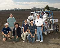 Flagstaff AZ (SPX) Dec 11, 2007 Every September, after the summer rain backs off but before the mornings get too cold, a pack of RATS descends on the desert near Flagstaff, Ariz., to spend two weeks testing technologies that will play a vital role in the future of space exploration. Roughly 150 engineers and scientists participate in the NASA program, known as Desert Research and Technology Studies, or "Desert RATS." The 10-year-old program is part of the agency's Exploration Systems Mission Directorate and involves groups from several NASA centers and universities. During the annual trip out west, they take advantage of the variety of desert terrains to test new or improved equipment that astronauts may use during excursions on the surface of the moon. Projects in testing range from computer hardware and software to spacesuits, rovers and astronaut habitats. Three teams from NASA's Kennedy Space Center in Florida make the trip out west each year: the communications/networking group, the cryogenics surface systems team and the surface physics group. Marc Seibert, a communications and networking engineer from Kennedy, has been attending the desert outings for six years. Seibert is part of the KSC Telescience Laboratory, which is responsible for video, voice, data, wired and wireless networking, and network security for the desert test site each year. Since reliable communications are essential and everyone needs communications at the test site, Telescience lab team members are usually the first people on duty in the morning and the last to leave each night. "Our role in Desert RATS is to make sure everything can communicate, and make sure people back in the mission control building at Johnson Space Center can connect and interact with the test site," Seibert explained. One of the group's accomplishments during the September 2007 desert test was a fourth-generation digital signal processor and audio system that dramatically cleans up the quality of the audio from spacesuit helmets. Although today's astronauts use a head-mounted system with noise-cancelling microphones, the goal is to fix the microphones inside the suit helmet itself. But in this arrangement, the hiss of air flowing over the wearer's head and the resonance of the helmet can make it difficult to understand what an astronaut is saying. With the addition of the processor, the audio is vastly improved, with excess noise almost entirely removed. Another helpful contribution from the Kennedy communications/networking group is a large semi trailer that is part habitat simulator and part control center. In the rear of the trailer, spacesuit stands allow crew members to practice suiting up and exiting a lunar habitat. In the front, a team of engineers can interact with the suited subjects and monitor and control the software on the suits and rovers. For the 2007 test, the group provided aggregate wireless communications for the field team through nearby Mount Elden in Flagstaff. At future desert outings, the group plans to demonstrate a lunar delay simulator that allows team members to selectively insert a delay into network traffic between devices in the field and mission control. For example, they would mimic the delay between a lunar rover and mission controllers. The cryogenics surface systems group debuted a new technology that will allow lunar explorers to recharge their liquid air packs with super-cold consumables without the interference of lunar dust. Known as the "dust-tolerant cryogenic quick disconnect," it uses a special bellows-like enclosure around the contacts to protect the seals from the damaging dust that blankets the moon's surface. Lunar dust is clingy and as sharp as crushed glass, and can tear up the seals on ordinary quick disconnects, causing leaks. Internal contamination is also a concern, especially in oxygen systems. Since the soil at an area known as Meteor Crater near Flagstaff has properties similar to lunar dust, the annual desert outing was the perfect opportunity to test the dust-tolerant technology. The cryogenics team exposed the new device to the soil, then easily transferred liquid nitrogen from a tank into a small cooler. "We proved the concept and it worked very well," said Rob Mueller, a surface systems lead engineer and member of the Desert RATS cryogenics group. "And since we now had very cold liquid nitrogen in the output storage vessel, we decided to make ice cream for the whole crew out of it." Kennedy's cryogenics lab, run by NASA and ASRC Aerospace, and the NASA prototype shop assisted in developing and manufacturing the disconnect hardware. During the coming year, Mueller and his colleagues hope to create a second-generation version that incorporates lessons learned for this demonstration and is smaller in size. The group has two more projects in development for the coming year. The lunar operations cryogenics umbilical system aims to scavenge and reuse the leftover propellants in lunar lander tanks for life support needs. A related project, the zero-boil-off cryogenic storage unit, will use a special cryo-cooler to prevent residual propellants from boiling away when they could be used at a lunar outpost. Imagine how much easier life on the moon could be if surfaces could somehow repel that clingy lunar dust. At this year's desert outing, the electrostatics and surface physics laboratory demonstrated a technology designed to do just that. It starts with a voltage signal applied in a specific sequence to three sets of electrodes embedded in the surface. This creates a traveling electric field that moves like an invisible wave and forces dust particles off the surface. "What we brought this year was an optically transparent dust screen," explained Dr. Jim Mantovani, a physicist. "This would have applications for solar cells, visors on astronaut helmets, windows -- any application where you have a transparent surface and you need to keep it dust-free." According Dr. Carlos Calle, who lea