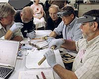 Mufreesboro TN (SPX) Apr 28, 2006 A forensic anthropologist at Middle Tennessee State University is one of a select number of scientists to participate in the examination of a skeleton that could force historians to rewrite the story of the entire North American continent. Dr. Hugh Berryman, research professor, was one of only 11 experts from across the United States to scrutinize the bones of Kennewick Man, a 9,300-year-old skeleton found 10 years ago along the Columbia River at Kennewick, Wash. "It's one of the oldest skeletons, one of the earliest individuals that populated this continent," Berryman says. "And we have a chance to look at those remains and learn from them what they tell us about the past and who these people were." The 380 bones are being preserved at the University of Washington's Burke Museum under an agreement with the U.S. Army Corps of Engineers, which controls the land on which Kennewick was discovered. Berryman says he was between two and three feet deep in the ground. The burial miraculously saved the bones from the elements, the animals, machinery and man for centuries, and ancient deposits of calcium carbonate on the bones allowed the researchers to determine the positioning of the bones in the ground. "We have evidence that the bones were still in anatomic order," Berryman says. "He was still articulated, and he appears to have been a burial. So once something is buried, that moves it at a depth that perhaps the coyotes, the wolves, scavengers could not get to it." The July 2005 research was very nearly derailed when the Corps initially decided to turn Kennewick over to a coalition of Native American tribes. Eight scientists filed a federal lawsuit to gain permission to study the skeleton. A federal judge, whose ruling later was upheld by the Ninth U.S. Circuit Court of Appeals, decided in favor of the scientists after determining that the tribes could not prove a direct cultural affiliation with Kennewick. Berryman says the information that can be gleaned from Kennewick came close to being lost forever. "Since 1990, we've lost most of the skeletal remains from groups," Berryman says. "It's a shame that a lot of these groups are already gone. We have no way of knowing what kind of movements there were in prehistoric times, where these people came from, who they were related to, what other tribal groups they might be related to." What the experts were able to ascertain from their brief encounter with Kennewick is that he did not look like a Native American. In fact, Berryman says Kennewick's facial features are most similar to those of a Japanese group called the Ainu, who have a different physical makeup and cultural background from the ethnic Japanese. Some Ainu's facial features appear European. Their eyes may lack the Asian almond-shaped appearance, and their hair may be light and curly in color. However, this does not mean that Kennewick Man necessarily was European in origin. His features more closely resemble those of the natives of the Pacific Rim than those of Native Americans. Berryman, a fracture expert who was trained in the fine art of picking apart dead people at the University of Tennessee's "Body Farm," also documented three types of bone breaks in Kennewick�fractures that were suffered in his lifetime and then healed, fractures that happened after his burial, and fractures that occurred when the skeleton was eroded from the riverbank. Part of a spear had remained lodged in Kennewick's right hip bone at a 77-degree angle, but, remarkably, the spear did not cause his death. The cause of his demise remains a mystery. What is known is that this athletic, rugged hunter suffered many physical traumas before finally expiring in his mid-to-late 30s. "The muscle markings are pretty pronounced," Berryman says."He was probably a well-built individual. The bones of the right arm were larger than the left." The bigger right arm can be explained by the 18-to-24-inch-long atlatl, or spear thrower, that gave him and his contemporaries the ability to propel a spear up to the length of a football field in order to kill their food. Kennewick died long before the invention of the bow and arrow. Berryman says Kennewick has only begun to reveal the story of his life and times, and it would be tremendous to have other scientists examine his bones. "It was a lot slower process than we thought," Berryman says. "The first day, all day, we looked at one bone, one femur. And then we realized at the end of the day that we were going to be lucky to be able to cover this the way that it should be in a week-and-a-half." Age, ancestry, sex, height, pathologies, types of trauma, even whether a woman has given birth�all can be determined just from examining a skeleton, says Berryman, who often is called upon to give expert testimony on bones in criminal trials. "Bone is great at recording its own history," he says."Throughout your life, there are different things that you do, and they may leave little signs in the bone. If you can read those signs, it's almost like interviewing a person."' Community Email This Article Comment On This Article Related Links Middle Tennessee State University All About Human Beings and How We Got To Be Here