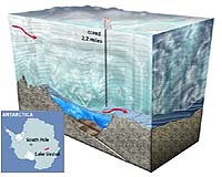 Lakes under the ice So far we know of about 150 lakes, but this number will probably increase when the entire continent has been surveyed. These lakes occur as a result of geothermal heat trapped by the thick ice, melting it from underneath, and the great pressure from the ice above, which lowers the melting point of water. The largest subglacial lake, Lake Vostok, lies beneath the coldest place on the planet, where the temperature at the surface often falls below 60 degrees Celsius. "It's the sixth largest freshwater lake on the planet by volume, and about the size of Lake Ontario," says Christner. "If you were on a boat in the middle of the lake, you would not see shores." Christner has examined microbial life in ice cores from Vostok and many other global locations. While direct samples of water from subglacial Antarctic lakes have yet to be obtained, the lower 80m or so of the Vostok ice core represents lake water that progressively freezes onto the base as the ice sheet slowly traverses the lake. "Microbial cell and organic carbon concentrations in this accreted ice are significantly higher than those in the overlying ice, which implies that the subglacial environment is the source," says Christner. Based on accumulating measurements of microbes in the subglacial environment, he calculates that the concentration of cell and organic carbon in the Earth's ice sheets, or 'cryosphere', may be hundreds of times higher than what is found in all the planet's freshwater systems. "Glacial ice is not currently considered as a reservoir for organic carbon and biology," says Christner, "but that view has to change."