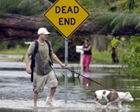 Miami (AFP) Aug 24, 2008 Tropical storm Fay, which left dozens dead in the Caribbean and Florida, has been downgraded to a depression but was still drenching southern US states Sunday along the Katrina-ravaged Gulf coast. "Fay weakens to a depression, but heavy rains and flooding could continue for several days," the Miami-based National Hurricane Center said in a statement late Saturday, with the storm slowing to a crawl after an extraordinarily long run beginning August 15, when it formed in the Caribbean. The depression swirled over the Florida Panhandle and crept westward into Alabama and Mississippi on Sunday, with New Orleans and other coastal cities and towns still suffering from Hurricane Katrina's ferocity three years ago now bracing for as much as 12 inches (30 centimeters) of rain. On Saturday Fay spawned tornadoes that ripped through seven counties in south Florida, destroying 10 homes and damaging 50 others, local emergency officials said. Some 50,000 homes have been flooded, and the storm knocked out power for 100,000 people. Fay killed 11 people during its seven-day zig-zag over Florida, and President George W. Bush declared an emergency in the waterlogged, wind-battered state on Thursday, opening the way for federal disaster assistance. Since it powered up from the Caribbean just short of hurricane strength last weekend, Fay first blasted through the tourist-heavy Florida Keys, then plowed up the west coast before making landfall Tuesday and crossing very slowly to the northeast. It drifted out over the Atlantic before boomeranging back westward over northern Florida and towards other Gulf coast states. The storm is reportedly blamed for at least one death in Georgia as well. While the storm began breaking apart on Sunday as dry air sucked it inland, it was still packing heavy rain that has put officials in New Orleans on guard against a repeat of the devastating deadly flooding delivered by Hurricane Katrina. "A flash flood watch is in effect through Monday evening for much of southeastern Louisiana," Danielle Manning of the National Weather Service told the New Orleans Times-Picayune. Army Corps of Engineers staff in New Orleans were put on alert to monitor water levels in canals that are connected to Lake Pontchartrain -- the lake whose levees famously burst during Katrina -- and to implement emergency drainage operations if needed. "We have activated our teams as a precautionary measure for the safety of the public," New Orleans district commander Alvin Lee said in the Times-Picayune. "We are ready to close the gates and run the pumps should the need arise," he added. Governor Bob Riley declared a state of emergency in Alabama, where officials issued flood warnings, opened shelters and readied trucks capable of conducting floodwater rescues. The storm was working itself westward at about 10 miles (16 kilometers) per hour, "but Fay could become nearly stationary or stall on Monday over eastern Louisiana and southern Mississippi," according to the National Weather Service. Earlier in the Caribbean, Fay left a trail of destruction and at least 40 deaths -- most of them in Haiti, where a truck carrying around 60 passengers plunged into a swollen river during the storm. Community Email This Article Comment On This Article Share This Article With Planet Earth