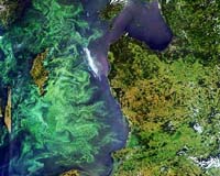 Socorro NM (SPX) Mar 12, 2007 Scientists have discovered that increased levels of ocean acidity and carbon dioxide concentrations have resulted in unexpected changes in oceanic chemical processes. Their research results are published in the March 7, 2007, issue of the journal Geophysical Research Letters. Oliver Wingenter of New Mexico Tech and his colleagues conducted a month-long field experiment. The researchers simulated present-day carbon dioxide concentrations and ocean acidity, and carbon dioxide levels expected at the end of this century and the middle of the next one. The study, funded by the National Science Foundation (NSF), New Mexico Tech and the Comer Foundation, sheds light on how chemical processes that occur throughout the world's oceans help regulate Earth's climate. Other recent scientific studies have shown that ocean acidity is rising 100 times faster than ever before, Wingenter said, but this study links the effect of increasing ocean acidity to changes in phytoplankton, which themselves produce "greenhouse gases." "Pronounced changes in some phytoplankton have been observed during previous experiments," said Wingenter. "The consequences for marine organisms, their ecosystems and climate-relevant gases are unknown." During the study, concentrations of dimethyl sulfide (DMS) and chloroiodomethane, produced by phytoplankton in ocean water, were measured. "In the atmosphere, DMS is rapidly oxidized to sulfur dioxide, which can form sulfate aerosols in the atmosphere," said Wingenter. These aerosols can act as nuclei for cloud formation. Increased cloudiness could block sunlight, thereby cooling Earth. "Therefore, additional DMS production in a higher carbon dioxide environment may help contribute to self-regulation of Earth's climate." "The bottom line is that carbon dioxide-loading of the atmosphere could lead to environmental changes we have not even begun to think about, effects beyond acidification of surface seawater and greenhouse warming," said Donald Rice, director of NSF's Chemical Oceanography Program. Combining future experimental and modeling efforts will lead to a better understanding of the feedback systems between the atmosphere and ocean, believes Wingenter. "To predict future climate more accurately, it's critical that we understand the outcome of increasing ocean acidification and increasing carbon dioxide levels." Wingenter's co-authors include former New Mexico Tech undergraduates Karl Haase and Max Ziegler, and scientists from the University of Bergen, the University of New Hampshire, the University of Kiel in Germany, and University of California at Irvine. Community Email This Article Comment On This Article Related Links New Mexico Tech Making money out of watching earth from space today Learn about Climate Science at TerraDaily.com Water, Water Everywhere and Not A Drop To Drink... Water News - Science, Technology and Politics