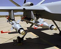 Wright-Patterson AFB OH (SPX) May 21, 2008 A test team with the 658th Aeronautical Systems Squadron completed the first Global Positioning System guided weapons release from an MQ-9 Reaper May 13 at the Naval Air Warfare Center Weapons Division at China Lake, Calif. The efforts of the pilots, sensor operators, maintainers, weapons troops and testers culminated in six successful guided bomb unit-49 weapon releases in one day. The first two drops were inert weapons to ensure the GBU-49's GPS guidance was working properly. The final release employed four weapons at one time, also known as a ripple, with three weapons on GPS guidance and the fourth weapon guided by laser. The three GPS weapons "shacked" (a successful, direct hit on a ground target) their targets and the laser-guided weapon came very close. The GBU-49 is a laser-guided, 500-pound bomb much like the GBU-12, but it also includes an on-board GPS kit. The GBU-49 provides the warfighter an all-weather capability to employ a munition with precision without the aid of a laser designator. Community Email This Article Comment On This Article Share This Article With Planet Earth