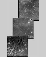 Paris, France (SPX) Jul 12, 2006 This mosaic of three images, taken by the advanced Moon Imaging Experiment aboard ESA's SMART-1 spacecraft, shows Mare Humorum on the Moon. AMIE obtained the top frame on Jan. 1 from a distance of 1,087 kilometers (674 miles) from the surface, with a ground resolution of 98 meters (318 feet) per pixel. The remaining two frames were taken on Jan. 13 from a distance of about 1,069 kilometers (663 miles) from the surface in the center image and 1,050 kilometers (650 miles) in the bottom image, with ground resolutions of 97 meters and 95 meters (315 feet and 309 feet) per pixel, respectively. The area shown in the top image is centered at a lunar latitude of 40.2 degrees south and a longitude of 25.9 degrees west. The center image was taken at a latitude of 40.2 degrees south and 27.3 degrees west. The bottom image was taken at 40.2 degrees south and 28.8 degrees west. Mare Humorum, or Sea of Moisture, is a small circular area on the lunar nearside, about 825 kilometers (510 miles) across. The mountains surrounding it mark the edge of an old impact basin that has been flooded and filled by mare lavas. These lavas also extend past the basin rim in several places. In the upper right are several such flows which extend northwest into southern Oceanus Procellarum. Mare Humorum was not sampled by the Apollo program, so its precise age has not yet been determined - although geologic mapping indicates its age falls between that of the Imbrium and the Nectaris basins, suggesting about 3.9 billion years, plus or minus 500 million years. Humorum is filled with a thick layer of mare basalt, believed to exceed 3 kilometers (1.9 miles) in thickness at the center of the basin. On the north edge of Mare Humorum is the large crater Gassendi, which was considered as a possible landing site for Apollo 17. Scientists think Mare Humorum is a scientifically interesting area because it allows the study of the relationships among lunar mare filling, mare basin tectonics, and global thermal evolution to the major mascon maria - regions of the lunar crust that contain a large amount of material denser than average for that area. Community Email This Article Comment On This Article Related Links SMART-1 Mars News and Information at MarsDaily.com Lunar Dreams and more