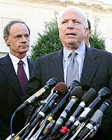 Washington (AFP) Jan 04, 2007 US Senator John McCain on Thursday reaffirmed his support for the deployment of thousands of additional US troops in Iraq, a proposal expected to figure in President George W. Bush's upcoming reassessment of US strategy there. "When I raise my hand and vote to send young men and women, American men and women into harm's way and fight a war, I am committing to accomplishing the mission," McCain, an early frontrunner for the 2008 Republican presidential nomination, told MSNBC. He said the fight against Islamic extremism must be joined with renewed fervor. "The consequences of failure are chaos and disaster. And these people ... want to destroy the United States of America," McCain said. His remarks came as Bush prepares to announce a shakeup of US Iraq policy, which reportedly could include sending tens of thousands of additional troops to supplement 140,000-strong US force already there. But a troop surge has found little support in Congress, with McCain one of only very few voices speaking up in favor of such a policy. McCain takes over this week as the top Republican in the Democrat-led Senate Armed Services Committee. The Democrats took control of the Senate and House of Representatives Thursday following their November elections triumph. McCain said he believes US soldiers there are equally committed to the goal of fighting on in Iraq. "I just recently visited them, including some who have been involuntarily extended," said McCain. "The morale is good. They understand what the mission is and they know what they need to do." "I am convinced that if we leave and lose this conflict, the conflict will spread in the region, there will be chaos, and we will be sending in men and women into harm's way both in the region and other parts of the world," the former Navy pilot and former Vietnam prisoner of war told MSNBC. "I've said for more than three years, it's long, hard, tough," McCain said. "It's going to be very, very difficult. And we have to understand that. But we also have understand the sequences of failure."