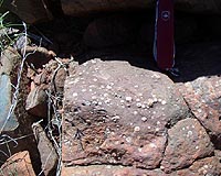 Rain craters Obviously, there are no raindrops surviving from the Archean, but last year Buick and his colleague Jelte Harnmeijer discovered rocks in South Africa that formed out of rain-soaked mud around 2.7 billion years ago. When the mud dried and hardened to rock, it retained craters that were the fossilized imprints of raindrops. "They look like little meteor impacts, a few millimeters across," Buick says. But he's confident that rain, not micrometeorites or hail, made these craters because there are no signs of bouncing or rolling as one would expect from a solid projectile. Moreover, the location of some of the little holes inside the rock rules out simple erosion. He has taken rubber casts of the craters and now plans to determine their volume using a laser scanner. From the largest in the sample, he and his collaborators should be able to estimate the atmospheric pressure when the rain storm broke. Previously, soil scientists determined how big a crater forms from a given raindrop size, but this never has been applied to ancient rocks because no one has ever before seen well-preserved raindrop craters from that long ago. Buick is so thrilled with his rare and precious find that he prefers to keep the exact location secret, only saying that it is located in an area "guarded by baboons, jackals and other fierce animals."