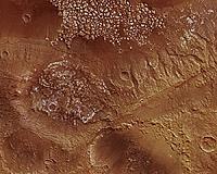 Rocky Mounds And A Plateau On MarsParis, France (ESA) Jun 29, 2010 When Mars Express set sail for the crater named after Portuguese navigator Ferdinand Magellan, it found a windblown plateau and mysterious rocky mounds nearby. Stretching across 190 x 112 km, this region of Mars covers an area of about 21 280 sq km, which is roughly the size of Slovenia. It is located to the southwest of the volcanic region Tharsis on the southern highlands of Mars, near t ... read more |