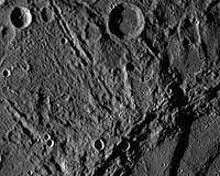 Baltimore MD (SPX) Jan 17, 2008 As NASA's MESSENGER spacecraft approached Mercury on January 14, 2008, it captured this view of the planet's rugged, cratered landscape illuminated obliquely by the sun. This image was taken from a distance of approximately 11,000 miles, about 56 minutes before the spacecraft's closest encounter with Mercury. It shows a region 300 miles across including craters less than a mile wide. The large, shadow-filled, double ringed crater to the upper right was glimpsed by Mariner 10 more than three decades ago and named Vivaldi, after the Italian composer. Community Email This Article Comment On This Article Related Links More images of Mercury Messenger Mission to Mercury News Flash at Mercury Mars News and Information at MarsDaily.com Lunar Dreams and more