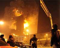 China holds 71 responsible for state TV station fire tragedyBeijing (AFP) Feb 11, 2010 China Wednesday blamed 71 people for a huge blaze at its new state television headquarters that engulfed a hotel, killed a fireman and left a 24-million-dollar clean-up bill, state media reported. One firefighter died after inhaling toxic fumes while battling the fire at the Mandarin Oriental's nearly finished flagship hotel inside the CCTV complex in February last year, while a further six ... read more |