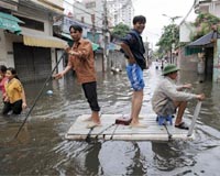 Hanoi (AFP) Nov 4, 2008 More rain lashed Vietnam's flood-hit capital Hanoi and the north-central countryside on Tuesday as the official death toll climbed to 74 after more than a week of heavy downpours. Thousands of people, including children and the elderly, remained trapped in their water-logged homes in Hanoi, where 20 people have died since last Friday in what officials now call the capital's worst floods in 35 years. Authorities worried whether the rain-soaked dyke system around Hanoi and across the northern Red River delta would hold back swollen waterways and have deployed thousands of troops to stand by for emergency repairs. Across Hanoi, 44 neighbourhoods remained under dirty brown floodwaters up to 2.5 metres (8.3 feet) high, raising fears about outbreaks of diseases such as cholera and dengue fever, authorities said. Hanoi officials said more than 9,000 troops had joined rescue efforts and over 5,000 households had received help -- but in many flood areas residents said there was hardly a police officer, soldier or rescue volunteer in sight. Schools across the capital remained closed Tuesday, and hospitals were crowded with cases of respiratory and gastrointestinal disease. Many districts still had no electricity and suffered shortages of drinking water, while food and petrol prices have multiplied in local markets. Among those killed in Hanoi were 12 people who were swept away in floods or fell into open drains hidden under flooded roads, four victims of electrocution and two people killed by lightning, said authorities. Across the disaster region, more than 120,000 buildings have been flooded, 250,000 hectares (over 600,000 acres) of rice and other crops have been lost, and 170 kilometres (105 miles) of rural roads damaged, officials said. Television reports showed rescue workers using trucks to clear boulders and rubble from roads in remote northern mountain areas, where heavy rains in deforested areas routinely cause flash floods and landslides. The worst-hit rural province was north-central Nghe An, where authorities have reported 22 deaths, including a 49-year-old man who was killed after saving three other people from drowning. In Ninh Binh province, south of Hanoi, workers used hundreds of sand bags to reinforce a river dyke but thousands of houses remained under water, said an official with the flood and storm prevention committee. Fifteen more people died in Ha Tinh province, and casualties were reported in provinces as far south as Quang Binh, a central region which has suffered almost two weeks of rains and floods. Weather forecasters predicted more downpours in the north, while Hanoi authorities said it would take at least until the end of the week before flood waters could be pumped out of the worst-hit areas. In neighbouring China, massive downpours in the southwestern Yunnan province and Guangxi region had also killed 43 people, mostly in landslides, and left 47 more missing by early Tuesday, state media reported. Vietnam, a country of 86 million, gets lashed by typhoons and tropical storms every year, mostly along the central coast. Last year, seven major storms from the South China Sea battered Vietnam, killing more than 435 people in floods and landslides, displacing thousands and leaving vast central areas inundated for months. Community Email This Article Comment On This Article Share This Article With Planet Earth