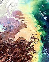 Paris - Mar 26, 2004 The coloured waters shown here in this 21 March Envisat Medium Resolution Imaging Spectrometer (MERIS) image have concluded a long journey across China. They are surging into the East China Sea from the mouth of the Yangtze River, which at 6300 km long is the longest river in Asia and the third longest in the world. Rising in the Qinghai-Tibetan Plateau, the Yangtze River snakes through nine provinces and serves as a drain for 1.8 million square kilometres of territory. MERIS is designed to detect ocean colour, and clearly visible here is how the Yangtze's heavy sediment plume discharges into and colours the waters along the Chinese coast. Its total sediment load is estimated at 680 million tonnes a year � equivalent in weight to a hundred Great Pyramids. Shanghai - China's largest city - is located south of the Yangtze mouth and the 1000-km-long navigable stretch of the Yangtze west of it is a zone of major economic activity. The downside of recent growth has been a decrease in water quality that the Chinese government say it intends to combat. At the start of the month an accidental chemical spill into a tributary of the Yangtze temporarily deprived almost a million people of drinking water. Community Email This Article Comment On This Article Related Links Envisat SpaceDaily Search SpaceDaily Subscribe To SpaceDaily Express Earth Observation News - Suppiliers, Technology and Application