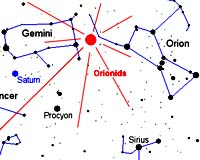 Huntsville AL (SPX) Oct 21, 2004 Would you like to see a piece of Halley's Comet streak past a planet that looks like an exploding star? No problem. Just set your alarm. It's going to happen, in plain view - no telescope required, on Thursday morning, Oct. 21st. Go outside before sunrise, around 5:30 a.m. is best, and look east. The brightest object in that direction is the planet Venus. It looks like a star going supernova. Above Venus lies Saturn, and below, near the horizon, is Jupiter. Every 10 minutes or so you'll see a meteor streak among these planets. The meteors are pieces of Halley's Comet. "Every year around this time Earth glides through a cloud of dusty debris from Halley's Comet," explains Bill Cooke of the NASA Marshall Space Flight Center. "Bits of dust, most no larger than grains of sand, disintegrate in Earth's atmosphere and become shooting stars." "It's not an intense shower," he says, "but it is a pretty one." Astronomers call it the "Orionid meteor shower," because the meteors appear to stream out of a point (called "the radiant") in the constellation Orion. The radiant is near Orion's left shoulder. But don't stare at that spot, advises Cooke. Meteors near the radiant seem short and stubby, a result of foreshortening. Instead, look toward any dark region of the sky about 90 degrees away. The vicinity of Venus or Jupiter is good. You'll see just as many Orionids there, but they will seem longer and more dramatic. Framing the scene are several bright stars: Sirius, Regulus, Procyon and others. Pay special attention to Castor and Pollux in Gemini. They're arranged in an eye-catching line with Saturn. To sum it up in one word: "sparkling." Two more words: "early" and "cold." Or how about "worth waking up for?" You decide.