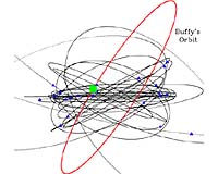 Paris (AFP) Dec 13, 2005 Astronomers working in Canada, France and the United States said Tuesday they had found a small deep-space object, nicknamed Buffy, that challenges mainstream theories about the evolution of the Solar System. The rock lies in the Kuiper Belt, the name for the flock of objects beyond Neptune's orbit that are believed to be leftover rubble from the Solar System's building phase and are the source for many comets, the Canada-France Ecliptic Plane Survey (CFEPS) said. Measuring between 500 and 1,000 kilometers (300 to 600 miles) across and taking about 440 years to make just one circuit of the Sun, Buffy is remarkable not for its size -- around half a dozen identified Kuiper Belt objects are bigger -- but for its location and orbital tilt. "This new object challenges current theories about the history of the early Solar System," CFEPS said in a press release. "(...) This new discovery is exciting because it causes us to rethink our understanding about how the Kuiper Belt formed." Buffy has an almost perfect circular orbit and encircles the Sun at an extreme tilt, at 47 degrees to the orbital plane of the planets as they swing around the Sun. But it lies in a curious outer region of the Kuiper Belt, on the dark, bone-freezing fringes of the Solar System. The theory is that, billions of years ago, this remote community of rocks, the so-called "extended scattered disk" of the Kuiper Belt, got their extremely eccentric orbits because of a passing star. The star's gravitational pull was enough to give the objects a tug, pulling them out of a circular orbit but not enough to coax them away from enslavement to the Sun. But Buffy is the odd one out -- its almost-perfect orbit and tilt circular puts a dent in the "star" theory. One possibility, the discoverers say, is that, in the infant days of the Solar System, the nascent Neptune lay much closer to the Sun. It eventually migrated outwards, causing at least some members of the Belt's "extended scattered disk" to develop more circular and tilted orbits, they speculate. Buffy is the temporary name given by the team for the object, whose official designation by the Paris-based International Astronomical Union (IAU) is 2004 XR 190. Its orbit is in a relatively narrow range of between 52 and and 62 astronomical units (AU) from the Sun (an AU is a standard measurement, being that of the distance between the Earth and the Sun, of approximately 150 million kilometers, or 93 million miles). By comparison, another "extended scattered disk" member called Sedna swings out to as far as 900 AU before coming as close to the Sun as 76 AU. The Kuiper Belt was first recognised in 1992. Most of its objects lie in a region that extends from 30 to 50 AU where there are "at least" 70,000 rocks with a diameter of 100 kms (60 miles) or more, according to David Jewitt, a specialist at the University of Hawaii. Buffy was first noted by Lynne Allen of the University of British Columbia, Canada, in December last year as she pored over data from powerful computers that sift through telescopic images in search of new celestial sightings. Because Kuiper Belt objects take so long to go around the Sun, it takes between one and two years of additional observations to calculate their orbits precisely. Further measurements are needed over the next three months for a fine-tuning of Buffy's orbit.