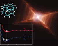 Moffett Field CA (SPX) Apr 09, 2007 NASA scientists have discovered evidence that a mysterious red glow, seen throughout the Milky Way and other galaxies but never on Earth, radiates from extremely fine dust clusters that cause the glow by combining molecular forces that oppose each other. Researchers theorize that the red glow, called the Extended Red Emission (ERE), is due to a very unusual form of charged molecular clusters. Measured in billionths of a meter (billionths of a yard), these tiny clusters are made of carbon-rich molecules called polycyclic aromatic hydrocarbons (PAHs) that are chicken-wire shaped. Astronomers have been unable to explain the red glow for more than 30 years, even though PAHs were implicated. The highly luminescent source material requires very harsh ultraviolet radiation, a radiation field so strong that most known polyatomic interstellar molecules would be destroyed. NASA Ames Research Center has been a leader in the study of PAHs under the direction of Ames Astrochemistry Laboratory led by Dr. Louis Allamandola. We have been studying polycyclic aromatic hydrocarbon molecules (PAHs) in the laboratory at NASA Ames Research Center for a long time, and although I had results that strongly supported the idea that PAHs had something to do with the ERE, the experimental results made it clear that if PAHs were involved, they were present in some as-yet unknown exotic form," said Murthy Gudipati of the University of Maryland and NASA Ames, who recently joined NASAs Jet Propulsion Laboratory after many years of close collaboration with Allamandola. "These types of highly reactive species are simply not readily accessible for laboratory study, but need very special conditions, added Gudipati. Through a combined effort of laboratory and theoretical chemistry calculations, the current advance in knowledge was made. Using advanced computational methods, scientists found that the red glow is indeed carried by unusual clusters of polycyclic aromatic hydrocarbon molecules. Highly developed tests confirm the presence of opposing properties within each cluster; they are charged and highly reactive, yet simultaneously, they have a stable, closed-shell electron configuration as does any stable molecule on Earth. Recent advances in theoretical techniques made it possible to tackle this problem computationally. Significant difficulties involved in the modeling of charge transfer within large molecular systems required an entirely new approach, said Dr. Timothy Lee, astrochemist and chief of the Space Science and Astrobiology Division at NASA Ames. "Once we convinced ourselves that our new approach could handle these strange particles, I was able to simulate the detailed emission process on molecular systems much larger than any that had been done before," said Young Min Rhee, postdoctoral fellow at the University of California, Berkeley, and the lead author of the paper published last month in the Proceedings of the National Academy of Sciences. "Our simulation shows that this type of charged PAH cluster can account for the ERE while satisfying the physical requirements necessary to survive the harsh interstellar conditions continued Rhee. According to scientists, this research has important implications in other areas as well, including combustion processes and exotic nano-materials. For instance, the formation of soot particles produced by diesel and jet engine combustion is not well understood. Self-forming PAH clusters may be the key step to understanding this process. Evidence suggests there is closed-shell charged PAH ions in flames, and the highly robust yet unusual closed-shell PAH clusters described here may be the soot nucleation sites in flames, a result that has been long anticipated. Authors: Y.M. Rhee (University of California, Berkeley); T.J. Lee (NASA Ames Research Center); M.S. Gudipati (Jet Propulsion Laboratory); L.J. Allamandola (NASA Ames Research Center); M. Head-Gordon (University of California, Berkeley) Community Email This Article Comment On This Article Related Links More science at PNAS Redglow at NASA Ames Stellar Chemistry, The Universe And All Within It Stellar Chemistry, The Universe And All Within It