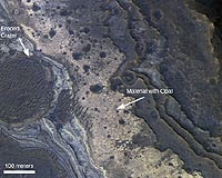 Pasadena CA (SPX) Oct 29, 2008 NASA's Mars Reconnaissance Orbiter has observed a new category of minerals spread across large regions of Mars. This discovery suggests that liquid water remained on the planet's surface a billion years later than scientists believed, and it played an important role in shaping the planet's surface and possibly hosting life. Researchers examining data from the orbiter's Compact Reconnaissance Imaging Spectrometer for Mars have found evidence of hydrated silica, commonly known as opal. The hydrated, or water-containing, mineral deposits are telltale signs of where and when water was present on ancient Mars. "This is an exciting discovery because it extends the time range for liquid water on Mars, and the places where it might have supported life," said Scott Murchie, the spectrometer's principal investigator at the Johns Hopkins University Applied Physics Laboratory in Laurel, Md. "The identification of opaline silica tells us that water may have existed as recently as 2 billion years ago." Until now, only two major groups of hydrated minerals, phyllosilicates and hydrated sulfates, had been observed by spacecraft orbiting Mars. Clay-like phyllosilicates formed more than 3.5 billion years ago where igneous rock came into long-term contact with water. During the next several hundred million years, until approximately 3 billion years ago, hydrated sulfates formed from the evaporation of salty and sometimes acidic water. The newly discovered opaline silicates are the youngest of the three types of hydrated minerals. They formed where liquid water altered materials created by volcanic activity or meteorite impact on the Martian surface. One such location noted by scientists is the large Martian canyon system called Valles Marineris. "We see numerous outcrops of opal-like minerals, commonly in thin layers extending for very long distances around the rim of Valles Marineris and sometimes within the canyon system itself," said Ralph Milliken of NASA's Jet Propulsion Laboratory in Pasadena, Calif. Milliken is lead author of an article in the November issue of "Geology" that describes the identification of opaline silica. The study reveals that the minerals, which also were recently found in Gusev Crater by NASA's Mars rover Spirit, are widespread and occur in relatively young terrains. In some locations, the orbiter's spectrometer observed opaline silica with iron sulfate minerals, either in or around dry river channels. This indicates the acidic water remained on the Martian surface for an extended period of time. Milliken and his colleagues believe that in these areas, low-temperature acidic water was involved in forming the opal. In areas where there is no clear evidence that the water was acidic, deposits may have formed under a wide range of conditions. "What's important is that the longer liquid water existed on Mars, the longer the window during which Mars may have supported life," says Milliken. "The opaline silica deposits would be good places to explore to assess the potential for habitability on Mars, especially in these younger terrains." The spectrometer collects 544 colors, or wavelengths, of reflected sunlight to detect minerals on the surface of Mars. Its highest resolution is about 20 times sharper than any previous look at the planet in near-infrared wavelengths. NASA's Jet Propulsion Laboratory manages the Mars Reconnaissance Orbiter mission for NASA's Science Mission Directorate in Washington. Lockheed Martin Space Systems, Denver, is the prime contractor for the project and built the spacecraft. The Applied Physics Laboratory led the effort to build the spectrometer and operates the instrument in coordination with an international team of researchers from universities, government and the private sector. Community Email This Article Comment On This Article Share This Article With Planet Earth
