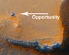 Pasadena CA (JPL) Oct 17, 2006Opportunity is healthy and perched at the tip of the promontory "Cape Verde," 3.1 meters (10.2 feet) from the edge of a sharp drop off on the rim of "Victoria Crater." Soon after arriving at Victoria Crater's "Duck Bay" last week, Opportunity was sent on its way to Cape Verde. Six sols, four drives and 127.61 meters (419 feet) later, Opportunity arrived at the rock target "Fogo" near the tip of Cape Verde. |