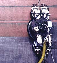 Pasadena - April 17, 2000 - A new robotic device that safely strips paint from the hulls of ships without polluting the environment is based on NASA robotics technology. The system, which has received kudos from environmentalist and undersea explorer Jean-Michel Cousteau, could revolutionize paint removal in the shipping industry. Current sandblasting methods potentially can contaminate waters surrounding harbors. Developed by NASA's Jet Propulsion Laboratory, Pasadena, CA; the Robotics Engineering Consortium at Carnegie Mellon University, Pittsburgh, PA; and UltraStrip Systems, Inc., Stuart, FL, the new system consists of an automated robotic device that is magnetized to the ship, a set of high-pressure jet streams, and a controller that helps the robot navigate along the surface of the ship. The water is filtered and then reused, while the paint residue is collected in a container and can then be disposed of safely. Using this method, no toxic dust or paint flakes are generated to pollute nearby areas or to be inhaled by system operators. "Having now personally seen demonstrations of the M2000, I know the system works," said Cousteau, president of Ocean Futures, Santa Barbara, CA. "It is inspiring to see a technology that can have such a positive environmental impact while at the same time providing a benefit to the profitability of the shipyard industry." "Robotics technology developed at the various NASA centers has resulted in new products ranging from automated harvesting, coal mining, earth moving, and material transport to robotic inspection and repair for gas pipelines, and agricultural spraying, to name a few," said Dr. Neville Marzwell, who heads Advanced Concepts and Technology Innovations at JPL. Previous stripping methods sandblasted paint from a Ship's hull, producing large amounts of toxic airborne dust and exposing workers, nearby communities and the environment to significant risks. The new method, which uses UltraStrip's patented Robotic M2000 hydroblasting technology, uses only water in the paint-removal process and produces dried paint chips and clean water. Since a powerful vacuum collects all water and paint, nothing can escape to pollute the environment. "We feel that the UltraStrip application is an excellent match with our commercialization goals. This system gives us a great opportunity to showcase robotics technology in a significant commercial application which will benefit the environment at the same time," said Bill Ross, consortium project manager. Still in development are computer-vision-based cruise control; sensors to detect surface quality, paint thickness, and any paint left on the hull; and diagnostic and analytic tools to optimize the speed of the robot for efficient and effective operations. The technology was created under the National Robotics Engineering Consortium -- a NASA, industry, and university partnership to develop new industrial products and services from technologies that help solve key problems and reinvigorate the U.S. robotics industry. Consortium activities provide a process to move rapidly developing robotics technology into industrial applications, and, in turn, to provide next-generation technology products for the Agency's science missions. The consortium also provides hands-on experience to students who will be the next generation of robotics scientists, technologists, and engineers. The consortium is managed by Marzwell at JPL, and Rick Kadunc from the Office of Space Science at NASA Headquarters, Washington, DC. UltraStrip's president is Dennis McGuire. Cousteau is also on the board of UltraStrip.