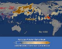 Greenbelt MD (SPX) Mar 18, 2008 In a new NASA study, researchers taking advantage of improvements in satellite sensor capabilities offer the first measurement-based estimate of the amount of pollution from East Asian forest fires, urban exhaust, and industrial production that makes its way to western North America. China, the world's most populated country, has experienced rapid industrial growth, massive human migrations to urban areas, and considerable expansion in automobile use over the last two decades. As a result, the country has doubled its emissions of man-made pollutants to become the world's largest emitter of tiny particles called pollution aerosols that are transported across the Pacific Ocean by rapid airstreams emanating from East Asia. Hongbin Yu, an associate research scientist of the University of Maryland Baltimore County working at NASA's Goddard Space Flight Center in Greenbelt, Md., grew up in China and taught there as a university professor, where he witnessed first-hand and studied how pollution from nearby power plants in China affected the local environment. Early this decade, scientists began using emerging high-accuracy satellite data to answer key questions about the role tiny particles play in the atmosphere, and eventually expanded their research to include continent-to-continent pollution transport. So Yu teamed with other researchers to take advantage of the innovations in satellite technology and has now made the first-ever satellite-based estimate of pollution aerosols transported from East Asia to North America. The new measurements from the Moderate Resolution Imaging Spectroradiometer (MODIS) instrument on NASA's Terra satellite substantiate the results of previous model-based studies, and are the most extensive to date. The new study will be published this spring in the American Geophysical Union's Journal of Geophysical Research-Atmospheres. "We used the latest satellite capabilities to distinguish industrial pollution and smoke from dust transported to the western regions of North America from East Asia. Looking at four years of data from 2002 to 2005 we estimated the amount of pollution arriving in North America to be equivalent to about 15 percent of local emissions of the U.S. and Canada," Yu said. "This is a significant percentage at a time when the U.S. is trying to decrease pollution emissions to boost overall air quality. This means that any reduction in our emissions may be offset by the pollution aerosols coming from East Asia and other regions." Yu and his colleagues measured the trans-Pacific flow of pollution in teragrams, a unit of measurement of the mass of pollution aerosol (1 teragram is about 2.2 billion pounds). Satellite data confirmed 18 teragrams -- almost 40 billion pounds -- of pollution aerosol was exported to the northwestern Pacific Ocean and 4.5 teragrams - nearly 10 billion pounds -- reached North America annually from East Asia over the study period. Yu points out, however, that the matter of pollution transport is a global one. "Our study focused on East Asian pollution transport, but pollution also flows from Europe, North America, the broader Asian region and elsewhere, across bodies of water and land, to neighboring areas and beyond," he said. "So we should not simply blame East Asia for this amount of pollution flowing into North America." In fact, in a model study published last November in the Journal of Atmospheric Chemistry and Physics, Mian Chin, also a co-author of this study and an atmospheric scientist at NASA Goddard, suggests that European pollution also makes a significant contribution to the pollution inflow to North America. "Satellite instruments give us the ability to capture more accurate measurements, on a nearly daily basis across a broader geographic region and across a longer time frame so that the overall result is a better estimate than any other measurement method we've had in the past," said study co-author Lorraine Remer, a physical scientist and member of the MODIS science team at NASA Goddard. The MODIS instrument can distinguish between broad categories of particles in the air, and observes Earth's entire surface every one to two days, enabling it to monitor movement of the East Asian pollution aerosols as they rise into the lower troposphere, the area of the atmosphere where we live and breathe, and make their way across the Pacific and up into the middle and upper regions of the troposphere. Remer added that the research team also found that pollution movements fluctuate during the year, with the East Asian airstream carrying its largest "load" in spring and smallest in summer. The most extensive East Asian export of pollution across the Pacific took place in 2003, triggered by record-breaking wildfires across vast forests of East Asia and Russia. Notably, the pollution aerosols also travel quickly. They cross the ocean and journey into the atmosphere above North American in as little as one week. "Using this imaging instrument, we cannot determine at what level of elevation in the atmosphere pollution travels. So, we do not have a way in this study to assess the degree of impact the pollution aerosols from China have on air quality here once they cross over to North America. We need improved technology to make that determination," said Remer. "Nevertheless, we realize there is indeed impact. For example, particles like these have been linked to regional weather and climate effects through interactions between pollution aerosols and the Sun's heat energy. Since pollution transport is such a broad global issue, it is important moving forward to extend this kind of study to other regions, to see how much pollution is migrating from its source regions to others, when, and how fast," said Remer. According to measurements taken with a satellite instrument, vast quantities of industrial aerosols and smoke from biomass burning in East Asia and Russia are traveling from one side of the globe 