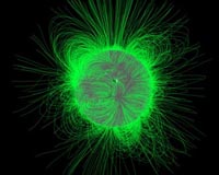 Where Do Magnetic Fields Come From? SDO will examine these fields at the surface and infer from where they originate inside the sun to where they are expressed as active regions, sunspots, and coronal loops, to when they eject particles into space as coronal mass ejections and solar flares. The goal is to determine how the sun's magnetic field is generated and to study how stored magnetic energy changes into kinetic energy (the energy of motion) in the form of the solar wind, energetic particles, and variations in the solar irradiance. If solar physicists can get a better understanding of the sun's magnetic field, they can predict how the effects of that field move into the solar system and near-Earth space to create space weather.