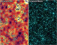 Pasadena CA (SPX) Dec 19, 2006 New observations from NASA's Spitzer Space Telescope strongly suggest that infrared light detected in a prior study originated from clumps of the very first objects of the universe. The recent data indicate this patchy light is splattered across the entire sky and comes from clusters of bright, monstrous objects more than 13 billion light-years away. "We are pushing our telescopes to the limit and are tantalizingly close to getting a clear picture of the very first collections of objects," said Dr. Alexander Kashlinsky of NASA's Goddard Space Flight Center, Greenbelt, Md., lead author on two reports to appear in the Astrophysical Journal Letters. "Whatever these objects are, they are intrinsically incredibly bright and very different from anything in existence today." Astronomers believe the objects are either the first stars -- humongous stars more than 1,000 times the mass of our sun -- or voracious black holes that are consuming gas and spilling out tons of energy. If the objects are stars, then the observed clusters might be the first mini-galaxies containing a mass of less than about one million suns. The Milky Way galaxy holds the equivalent of approximately 100 billion suns and was probably created when mini-galaxies like these merged. This study is a thorough follow-up to an initial observation presented in Nature in November 2005 by Kashlinksy and his team. The new analysis covered five sky regions and involved hundreds of hours of observation time. Scientists say that space, time and matter originated 13.7 billion years ago in a tremendous explosion called the Big Bang. Observations of the cosmic microwave background by a co-author of the recent Spitzer studies, Dr. John Mather of Goddard, and his science team strongly support this theory. Mather is a co-winner of the 2006 Nobel Prize for Physics for this work. Another few hundred million years or so would pass before the first stars would form, ending the so-called dark age of the universe. With Spitzer, Kashlinsky's group studied the cosmic infrared background, a diffuse light from this early epoch when structure first emerged. Some of the light comes from stars or black hole activity so distant that, although it originated as ultraviolet and optical light, its wavelengths have been stretched to infrared wavelengths by the growing space-time that causes the universe's expansion. Other parts of the cosmic infrared background are from distant starlight absorbed by dust and re-emitted as infrared light. "There's ongoing debate about what the first objects were and how galaxies formed," said Dr. Harvey Moseley of Goddard, a co-author on the papers. "We are on the right track to figuring this out. We've now reached the hilltop and are looking down on the village below, trying to make sense of what's going on." The analysis first involved carefully removing the light from all foreground stars and galaxies in the five regions of the sky, leaving only the most ancient light. The scientists then studied fluctuations in the intensity of infrared brightness, in the relatively diffuse light. The fluctuations revealed a clustering of objects that produced the observed light pattern. "Imagine trying to see fireworks at night from across a crowded city," said Kashlinsky. "If you could turn off the city lights, you might get a glimpse at the fireworks. We have shut down the lights of the universe to see the outlines of its first fireworks." Mather, who is senior project scientist for NASA's future James Webb Space Telescope, said, "Spitzer has paved the way for the James Webb Space Telescope, which should be able to identity the nature of the clusters." This analysis was partially funded through the National Science Foundation. Science support to NASA Goddard is supplied by Science Systems and Applications, Inc. NASA's Jet Propulsion Laboratory, Pasadena, Calif., manages the Spitzer mission for NASA. Science operations are conducted at the Spitzer Science Center at the California Institute of Technology in Pasadena. The observations were made by Spitzer's infrared array camera, which was built by NASA's Goddard Space Flight Center, Greenbelt, Md. The instrument's principal investigator is Dr. Giovanni Fazio of the Harvard-Smithsonian Center for Astrophysics. Community Email This Article Comment On This Article Related Links NASA Spitzer Space Telescope Stellar Chemistry, The Universe And All Within It Understanding Time and Space