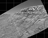 Pasadena CA (JPL) Nov 12, 2004 Operators of NASA's Mars Exploration Rover Opportunity have determined that a proposed route eastward out of "Endurance Crater" is not passable, so the rover will backtrack to leave the crater by a southward route, perhaps by retracing its entry path. "We've done a careful analysis of the ground in front of Opportunity and decided to turn around," said Jim Erickson, rover project manager at NASA's Jet Propulsion Laboratory, Pasadena, Calif. "To the right, the slope is too steep - more than 30 degrees. To the left, there are sandy areas we can't be sure we could get across." Before turning around, Opportunity will spend a few days examining the rock layers in scarp about 10 meters (33 feet) high, dubbed "Burns Cliff." From its location at the western foot of the cliff, the rover will use its panoramic camera and miniature thermal emission spectrometer to collect information from which scientists hope to determine whether some of the layers were deposited by wind, rather than by water. The rover will not reach an area about 15 meters (50 feet) farther east where two layers at different angles meet at the base of the cliff. "We have pushed the vehicle right to the edge of its capabilities, and we've finally reached a spot where we may be able to answer questions we've been asking about this site for months," said Dr. Steve Squyres, rover principal investigator at Cornell University, Ithaca, N.Y. "But after we're done here, it'll be time to turn around." "Going any farther could cut off our line of retreat from the crater, and that's not something anybody on the team wants to do." Opportunity entered the stadium-size crater on June 8 at a site called "Karatepe" along the crater's southern rim. Inside the crater, it has found and examined multiple layers of rocks that show evidence of a wet environment in the area's distant past. Opportunity and its twin, Spirit, successfully completed their primary three-month missions on Mars in April. NASA has extended their missions twice, most recently on Oct. 1, because the rovers have remained in good condition to continue exploring Mars longer than anticipated. Engineers have finished troubleshooting an indication of a problem with steering brakes on Spirit. The brakes are designed to keep the rover wheels from being bumped off course while driving. Spirit has intermittently sent information in recent weeks that the brakes on two wheels were not releasing properly when the rover received commands to set a new course. Testing and analysis indicate that the mechanism for detecting whether the brakes are released is probably sending a false indication. The rover team will disregard that signal and presume the brakes have actually released properly when commanded to do so. This anomaly has not been observed on the Opportunity rover. "We're going back to using the full steering capabilities of Spirit," Erickson said. Community Email This Article Comment On This Article Related Links Mars Rovers at JPL Mars Rovers at Cornell SpaceDaily Search SpaceDaily Subscribe To SpaceDaily Express Mars News and Information at MarsDaily.com Lunar Dreams and more