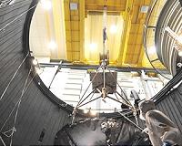 Juno Marches OnWashington DC (SPX) Mar 23, 2011 NASA's Juno spacecraft has completed its thermal vacuum chamber testing. The two-week-long test, which concluded on March 13, 2011, is the longest the spacecraft will undergo prior to launch. In the image, a technician is attaching the lifting equipment in preparation for hoisting the 1,588-kilogram (3,500-pound) spacecraft out of the chamber. Prominent in the photo is one of three l ... read more |